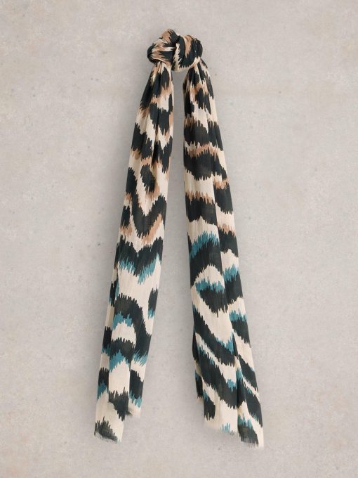 White Stuff Women’s Squiggle Ikat Print Scarf | Natural Multi
