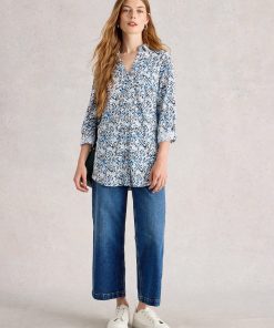 White Stuff Women’s Annie Long Sleeve Longline Shirt | White Print