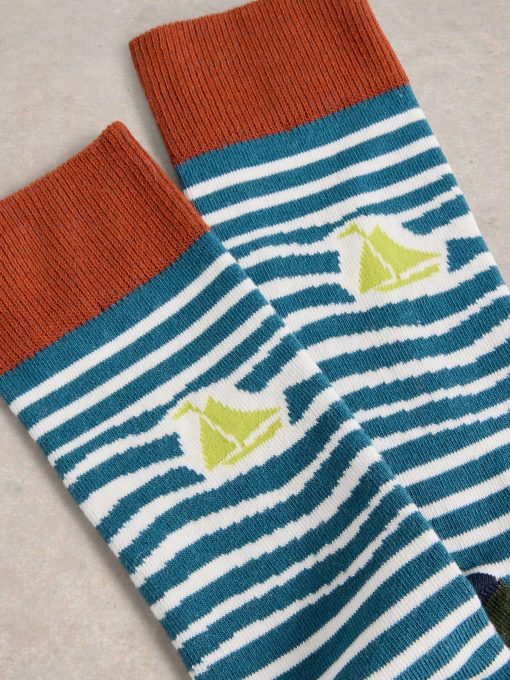 White Stuff Men’s Boat Stripe Ankle Sock | Teal Multi