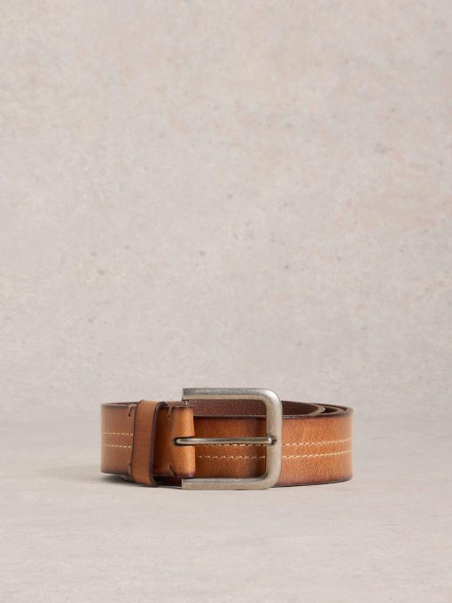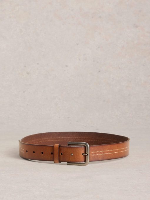 White Stuff Men’s Double Stitch Leather Belt | Mid Tan