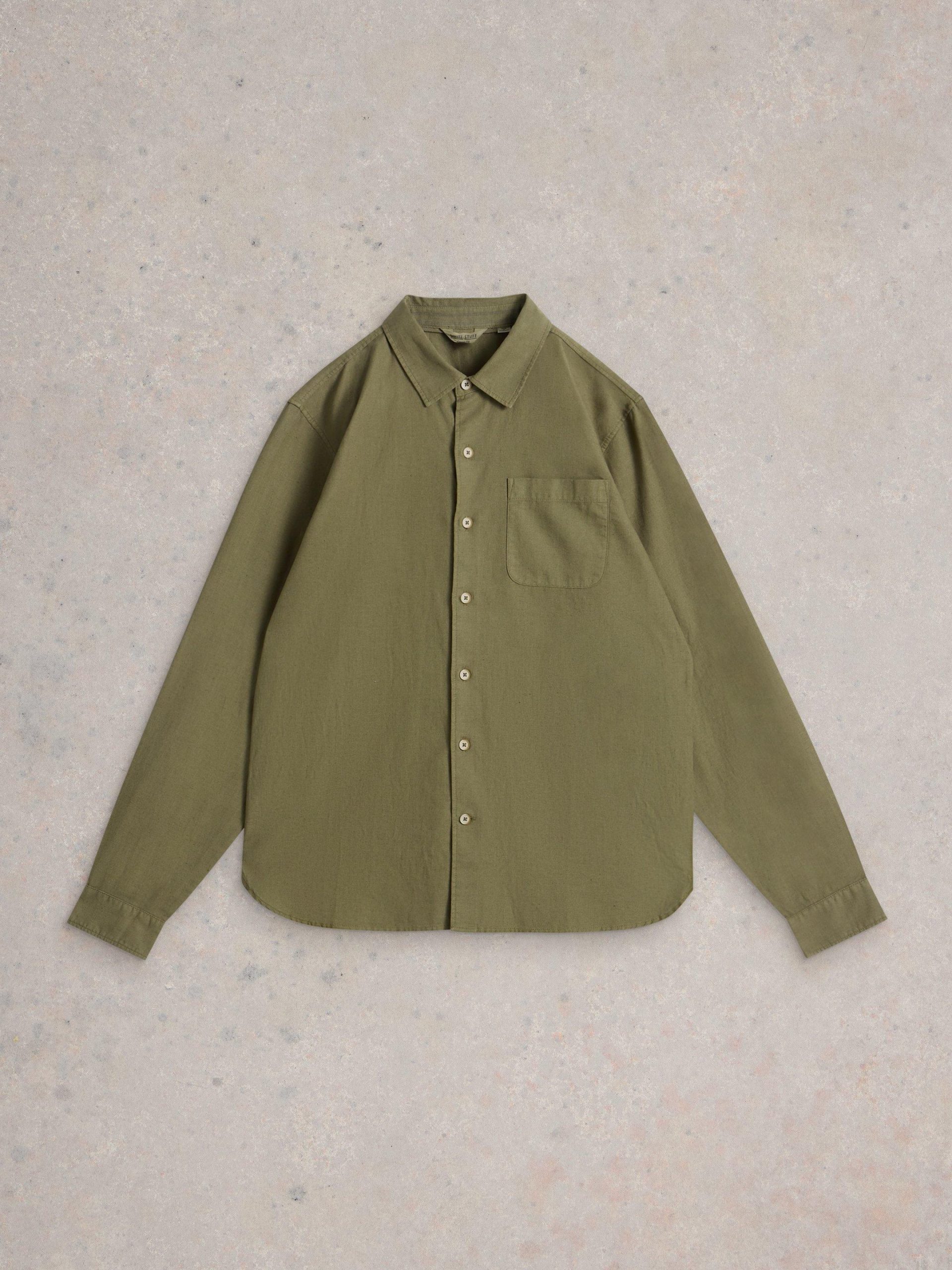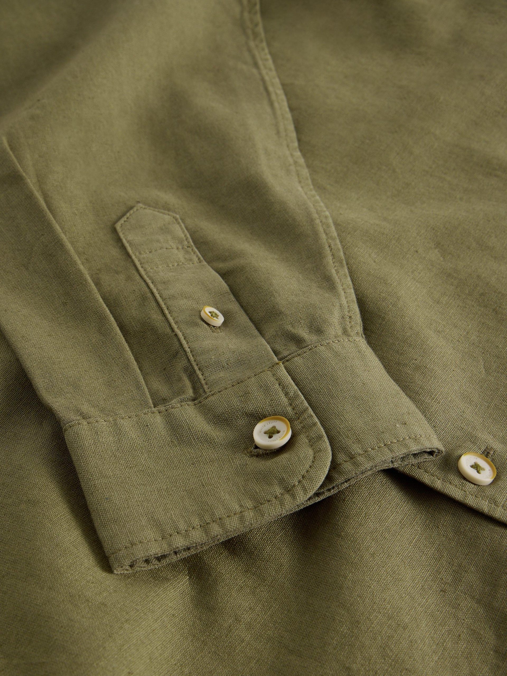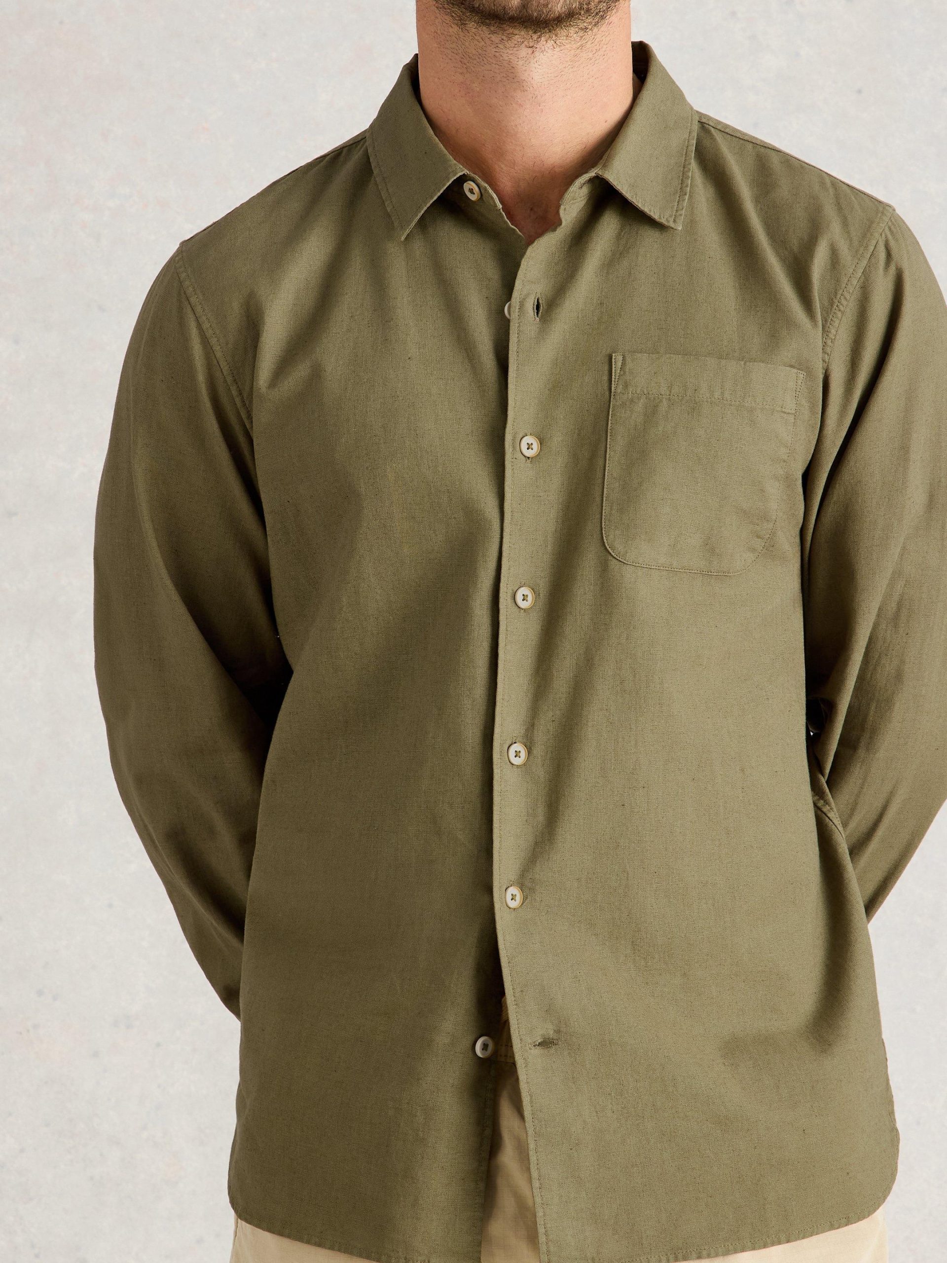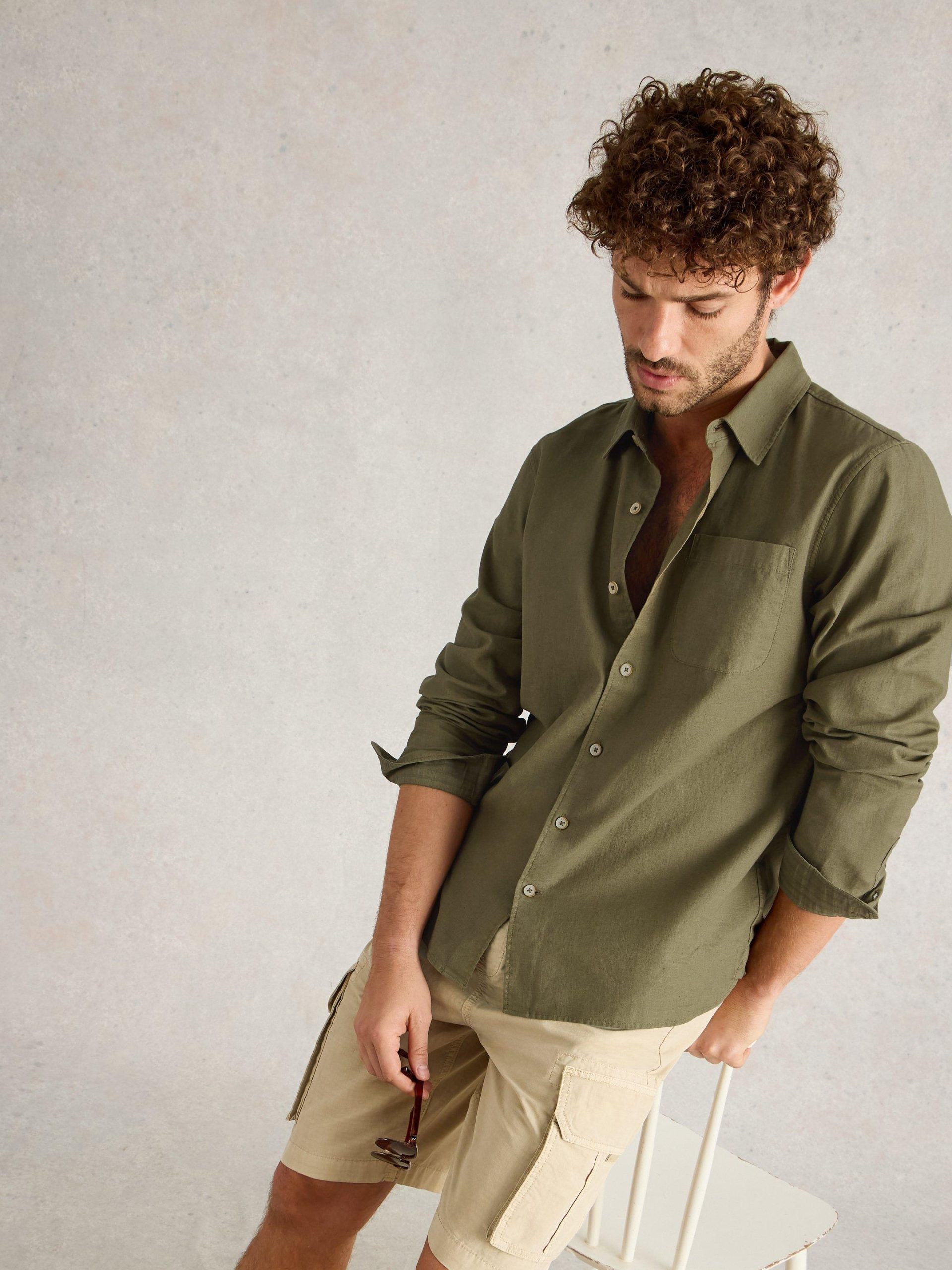 White Stuff Men’s Ely Linen Cotton Ls Shirt | Khaki Green