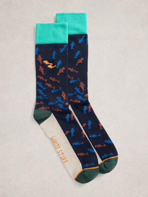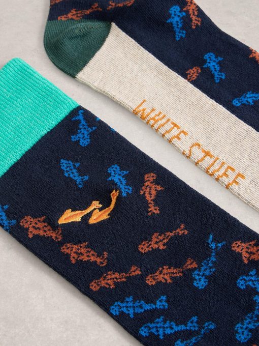 White Stuff Men’s Embroidered Ankle Socks | Navy Multi