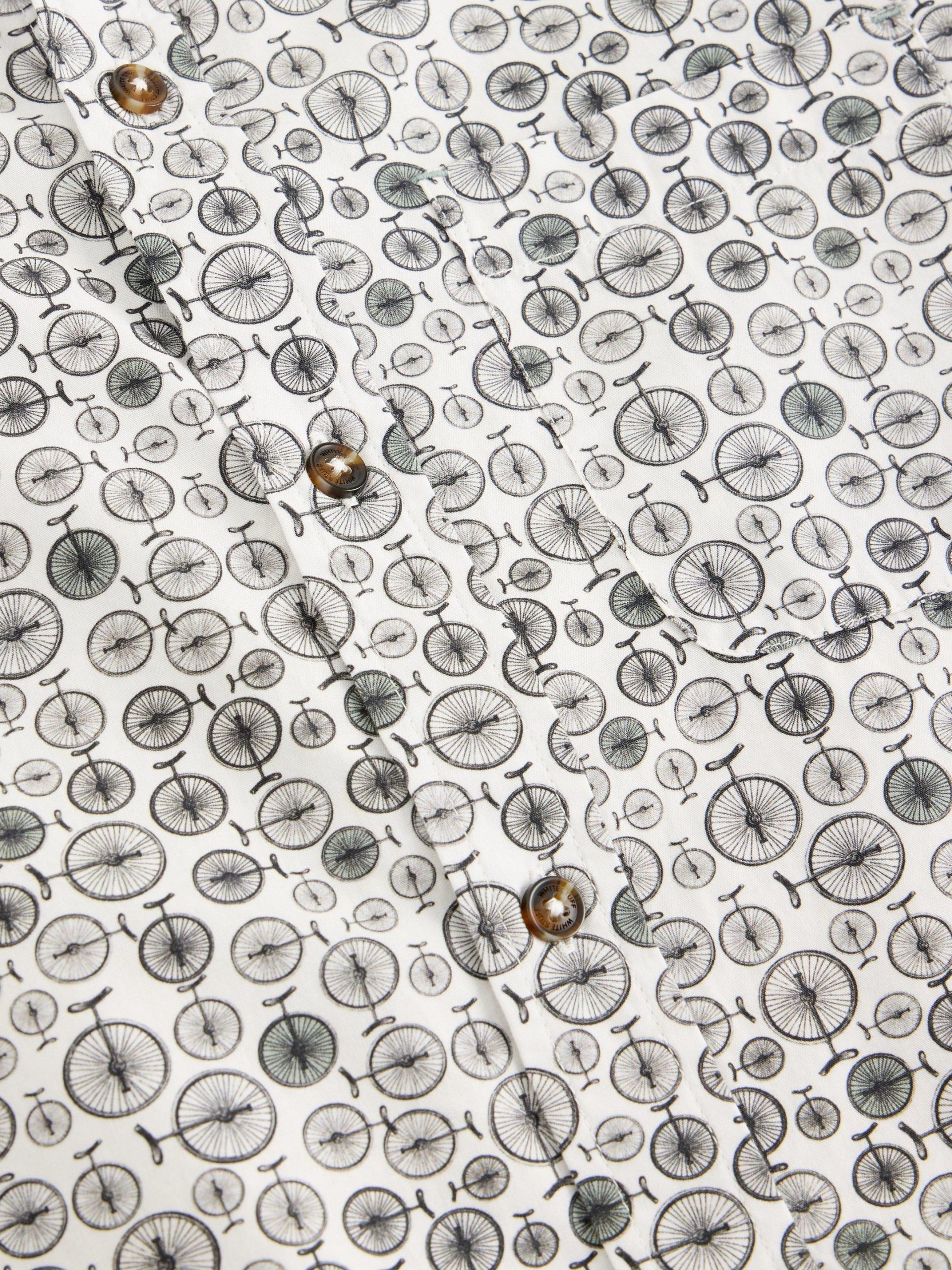 Take this bike print shirt for a ride. We’d layer it under blazers and pair it with comfy chinos. Now that’s smart thinking.