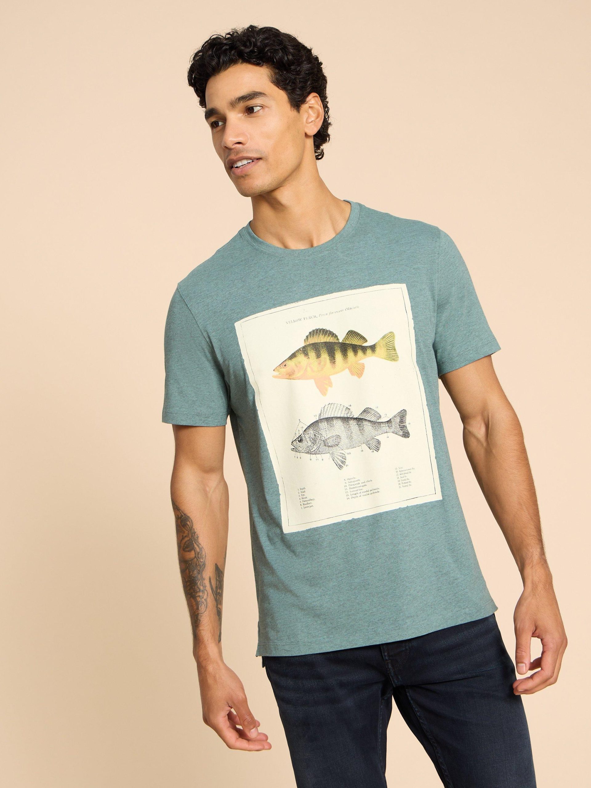 White Stuff Men’s Fish Diagram Graphic Tee | Blue Print