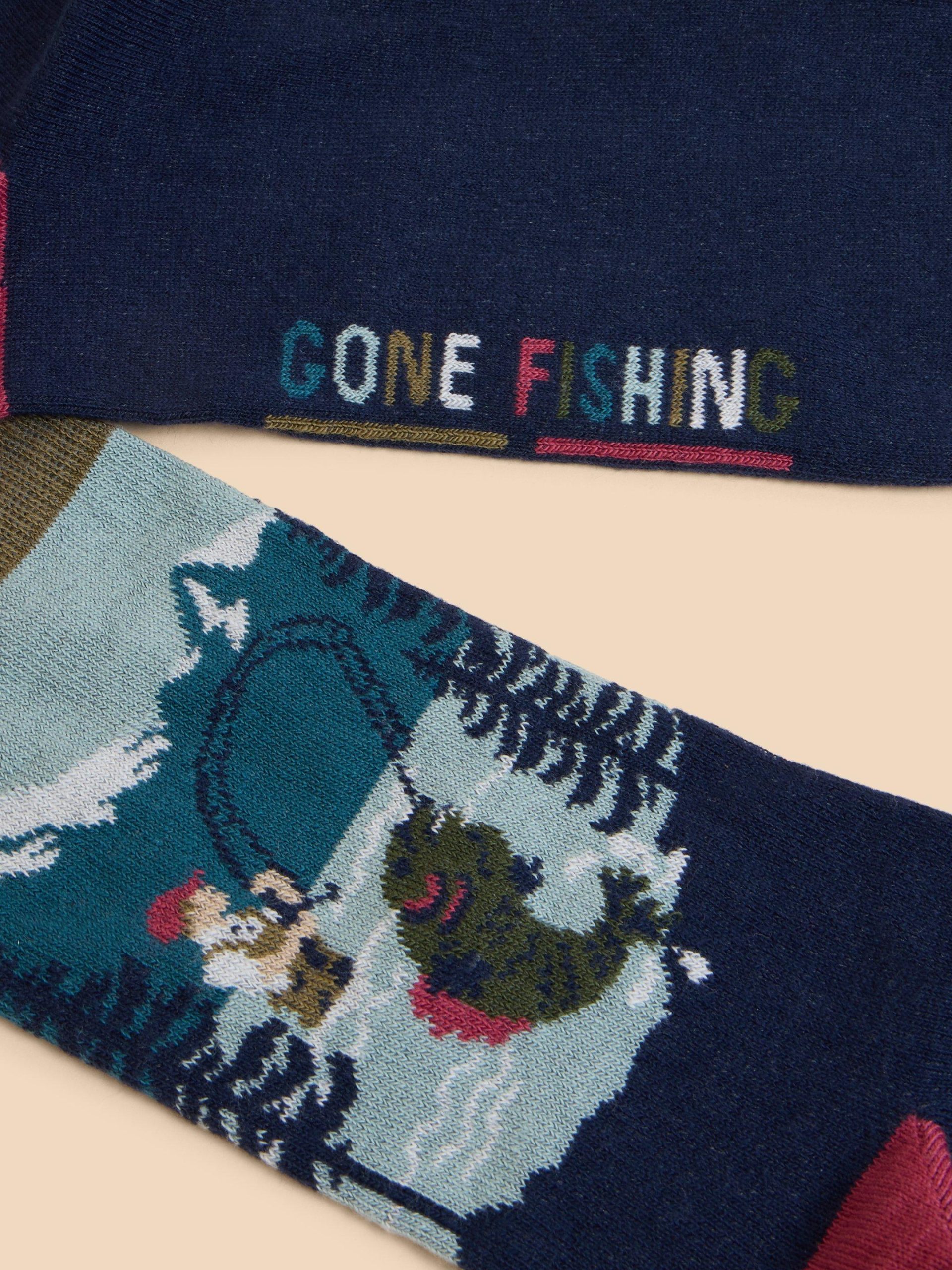 White Stuff Men’s Fishing Scene Ankle Sock | Blue Multi
