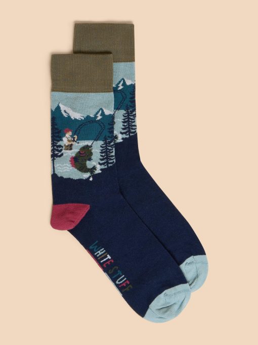 White Stuff Men’s Fishing Scene Ankle Sock | Blue Multi