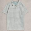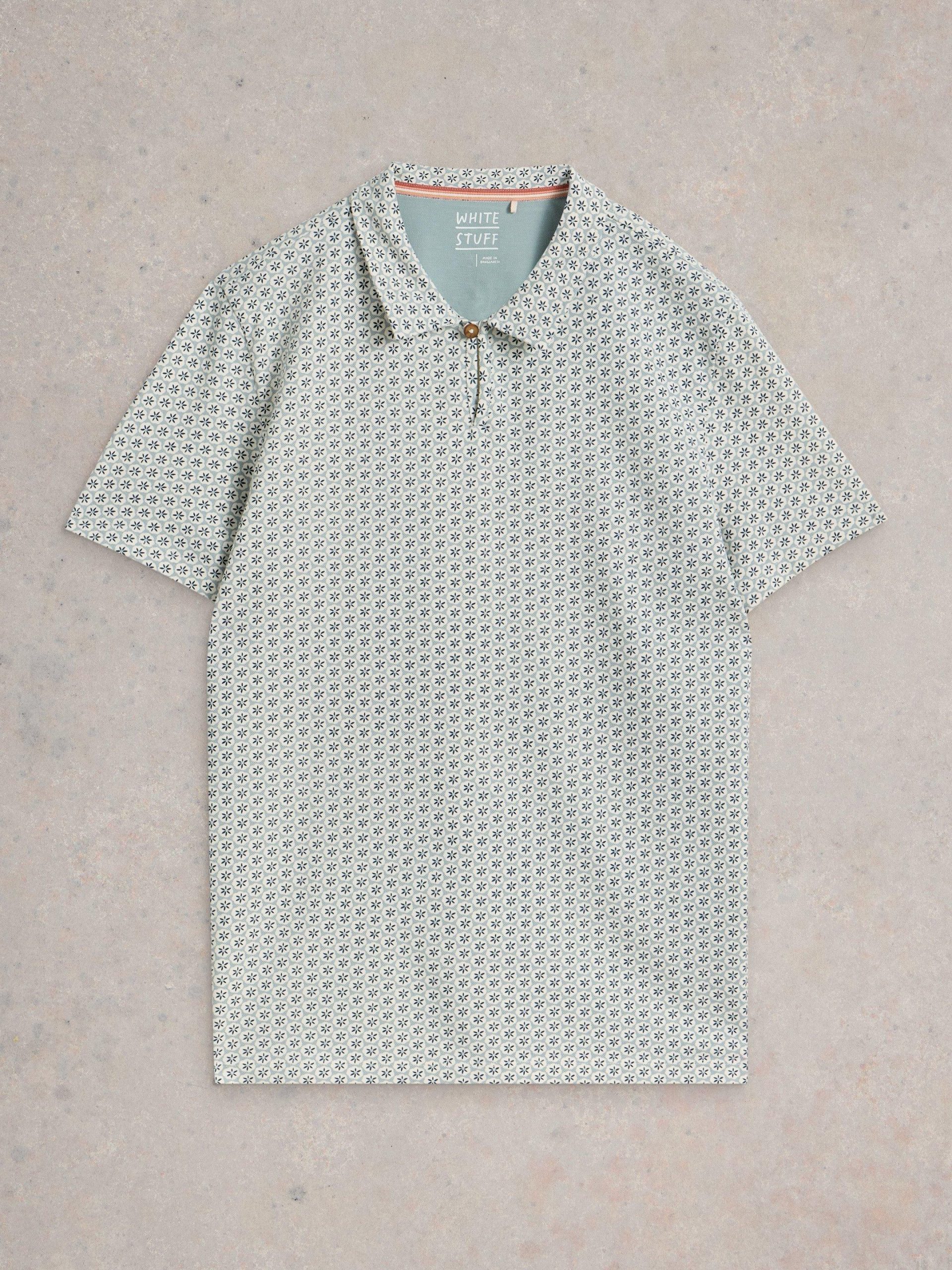 Put it in print with this 100% cotton polo top. (That’s a tiny, geometric print.)