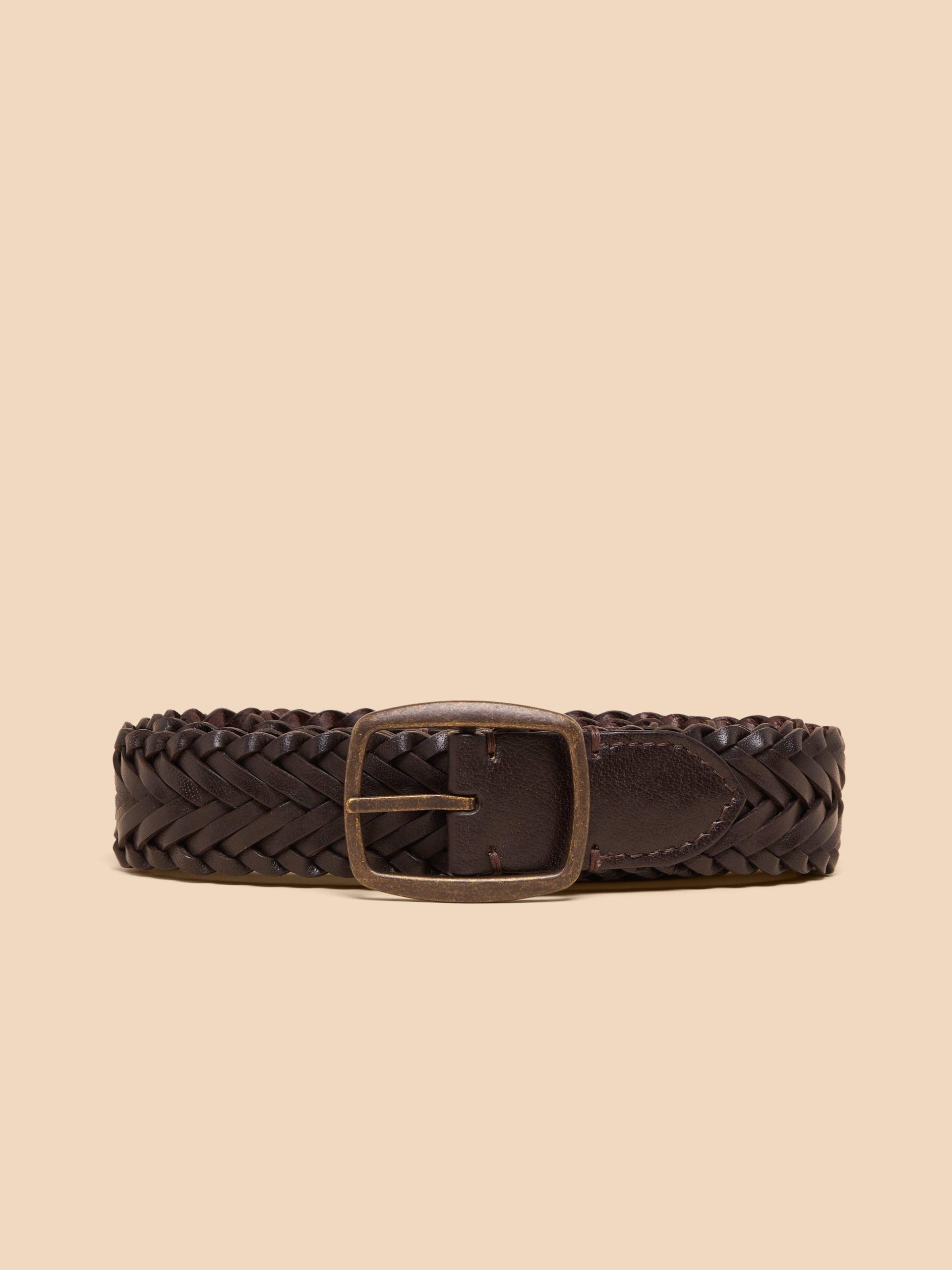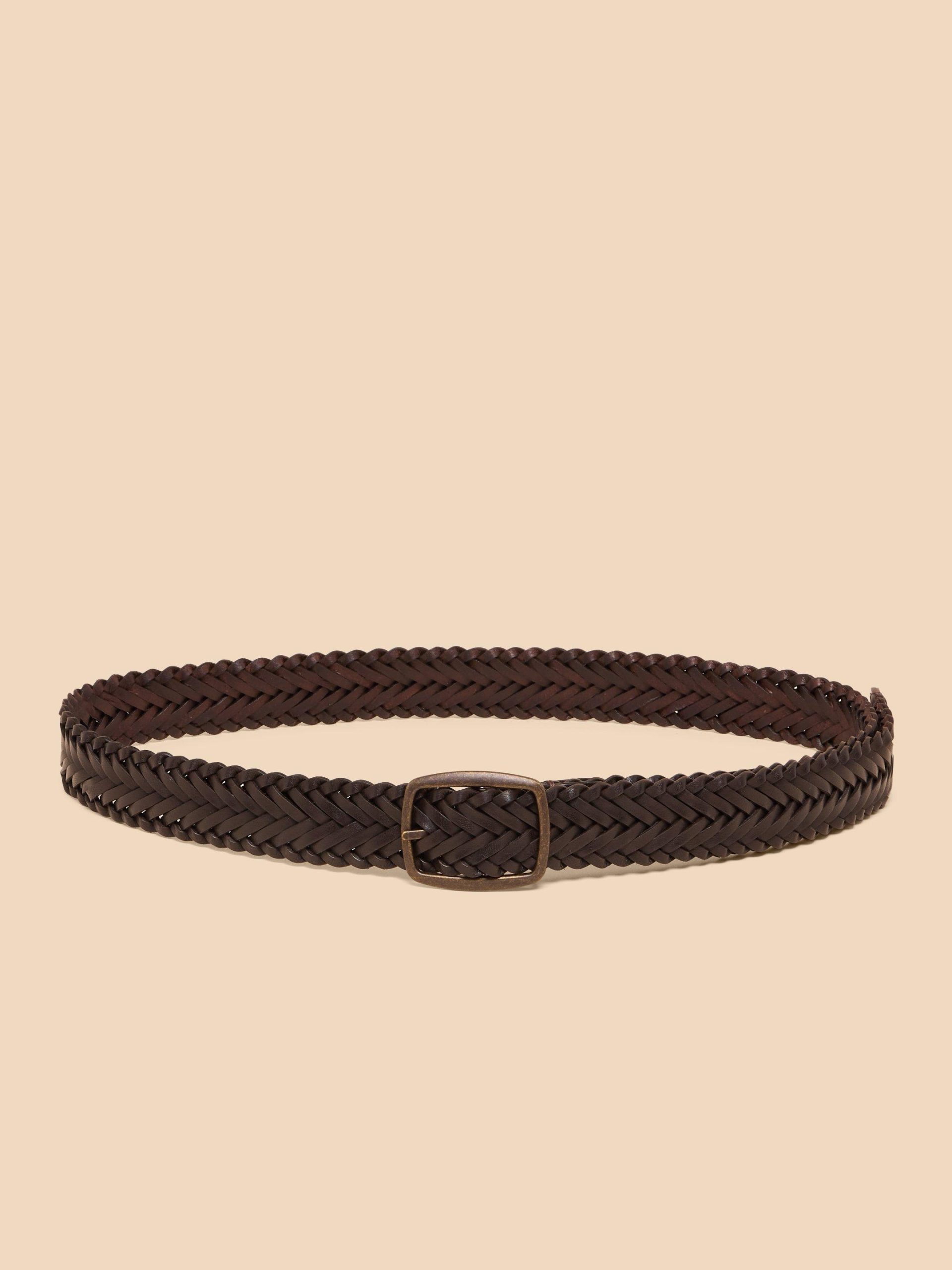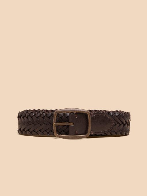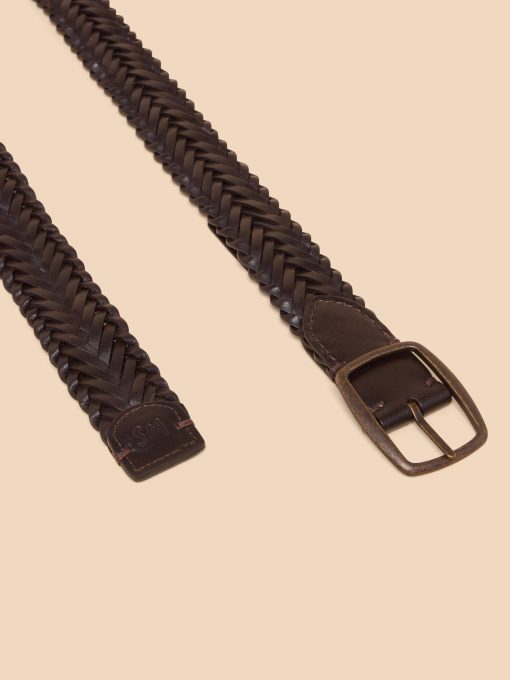 White Stuff Men’s Leather Woven Belt | Dark Brown