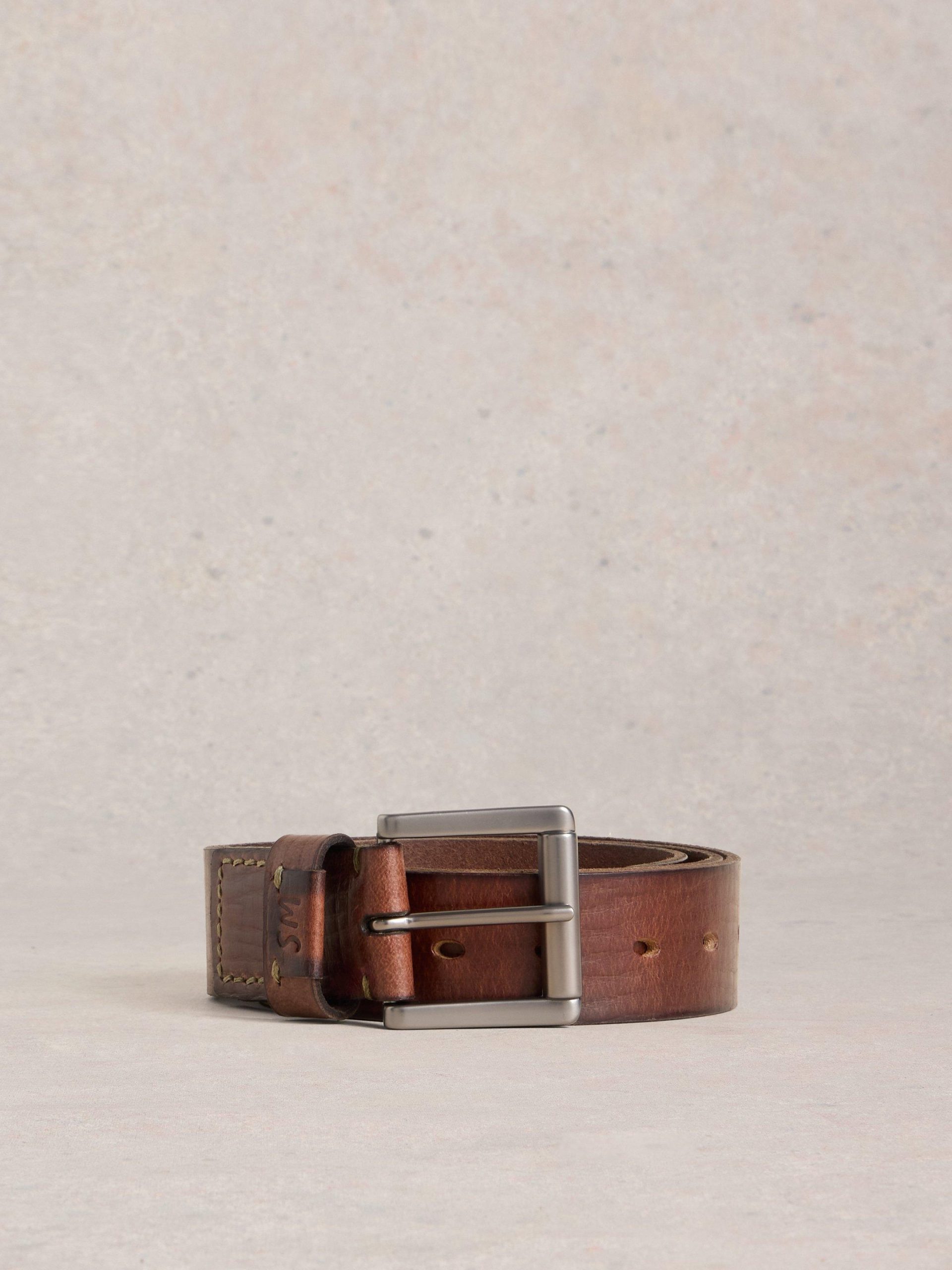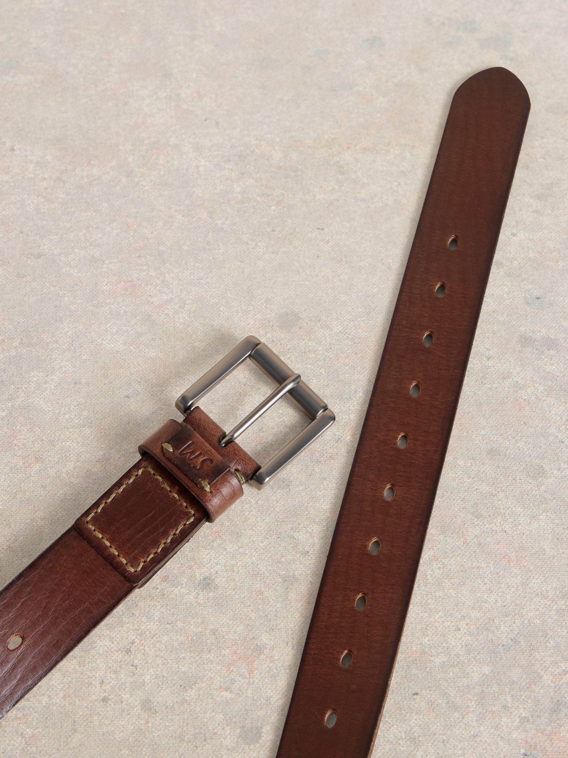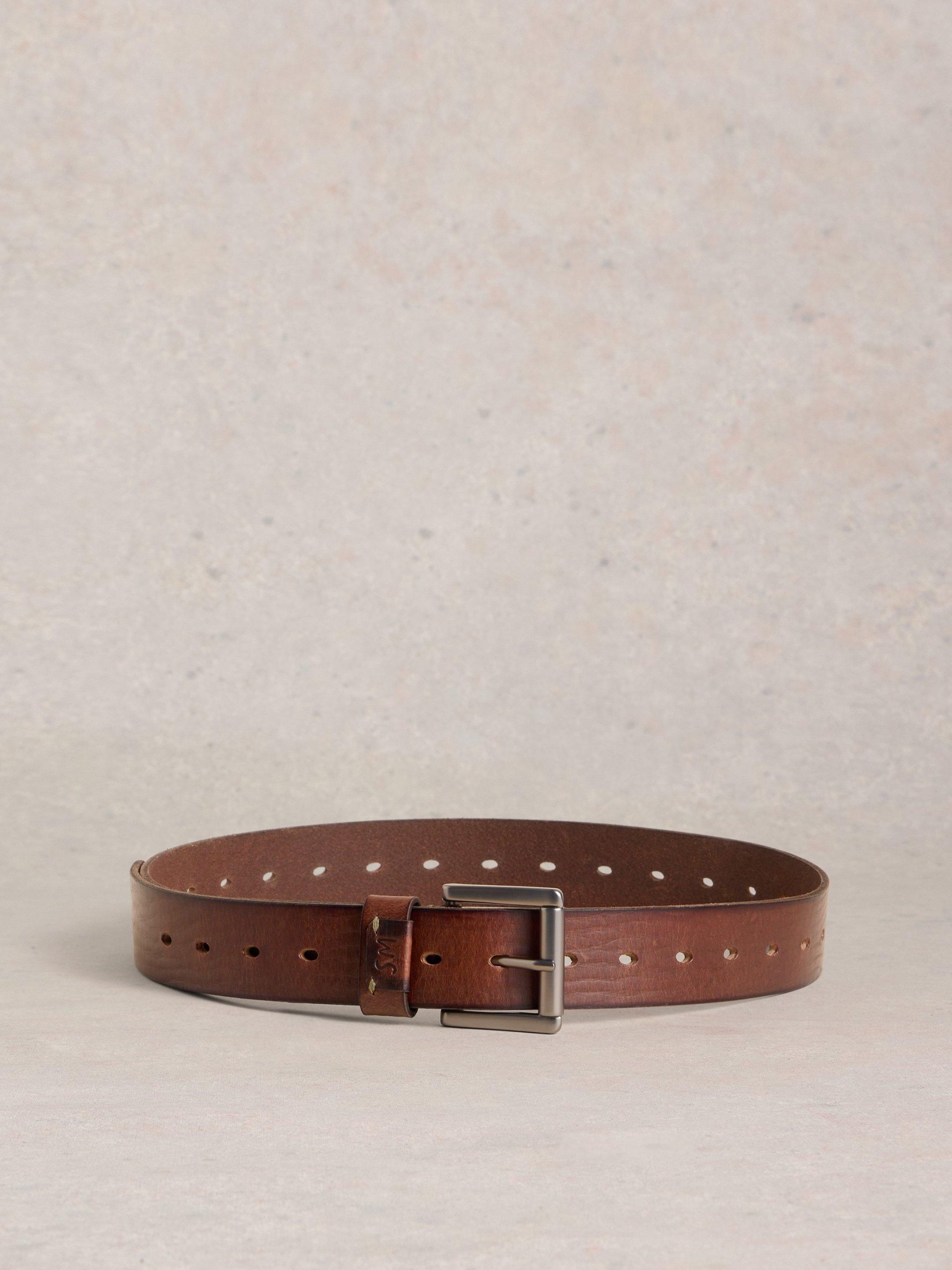 White Stuff Men’s Multi Punch Leather Belt | Mid Brown