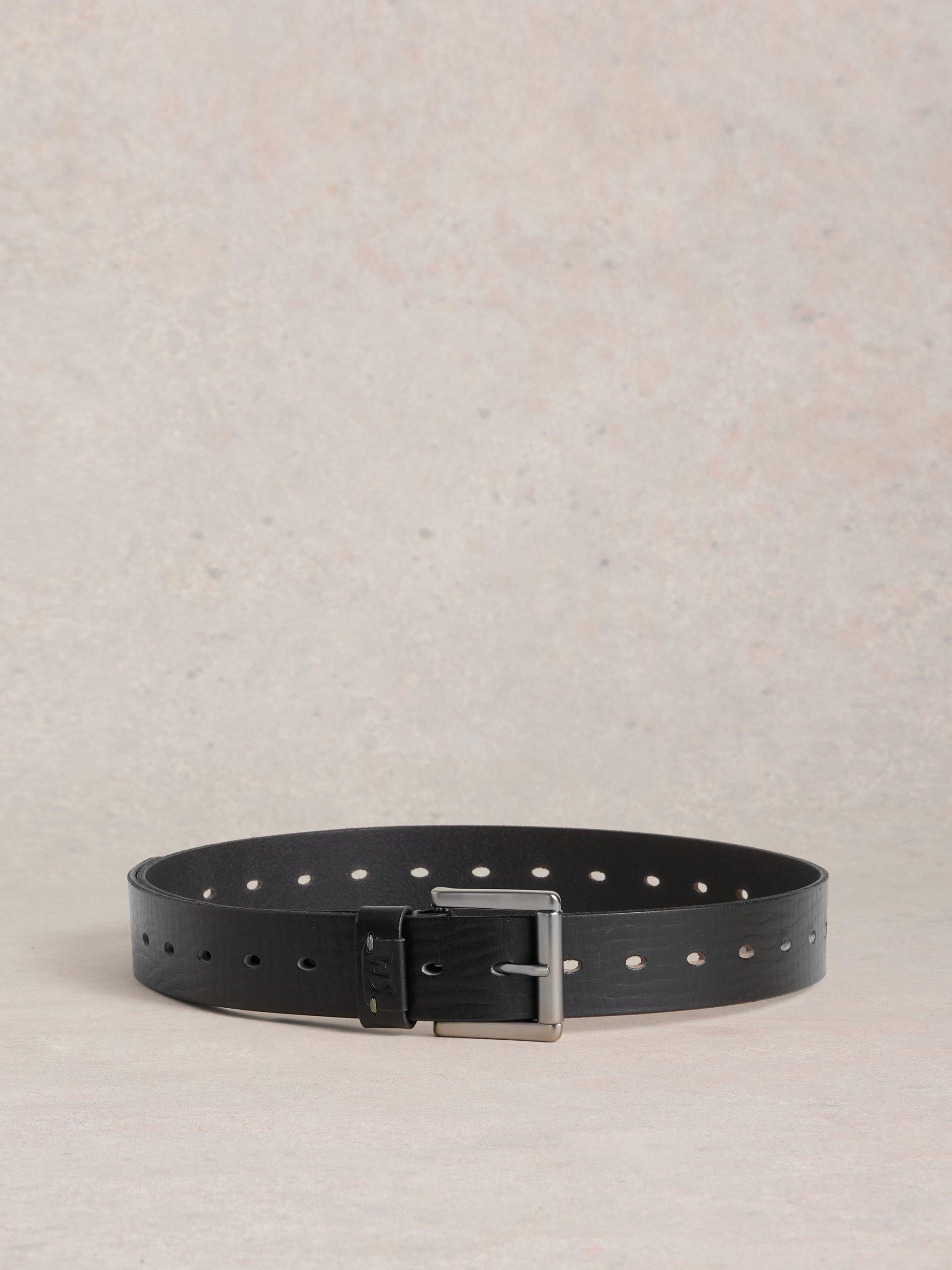 White Stuff Men’s Multi Punch Leather Belt | Pure Black