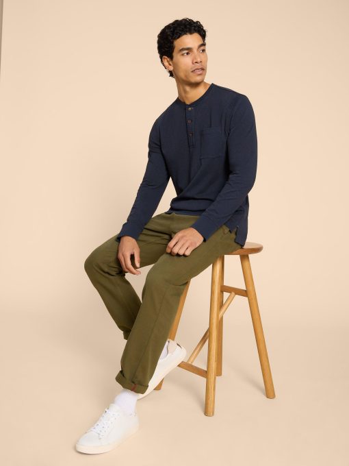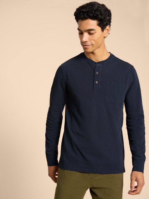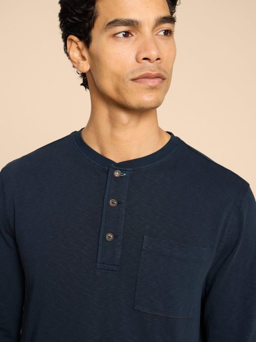 A classic, long-sleeved Henley with a practical twist (a chest pocket). Comes in two colours, for double the fun.