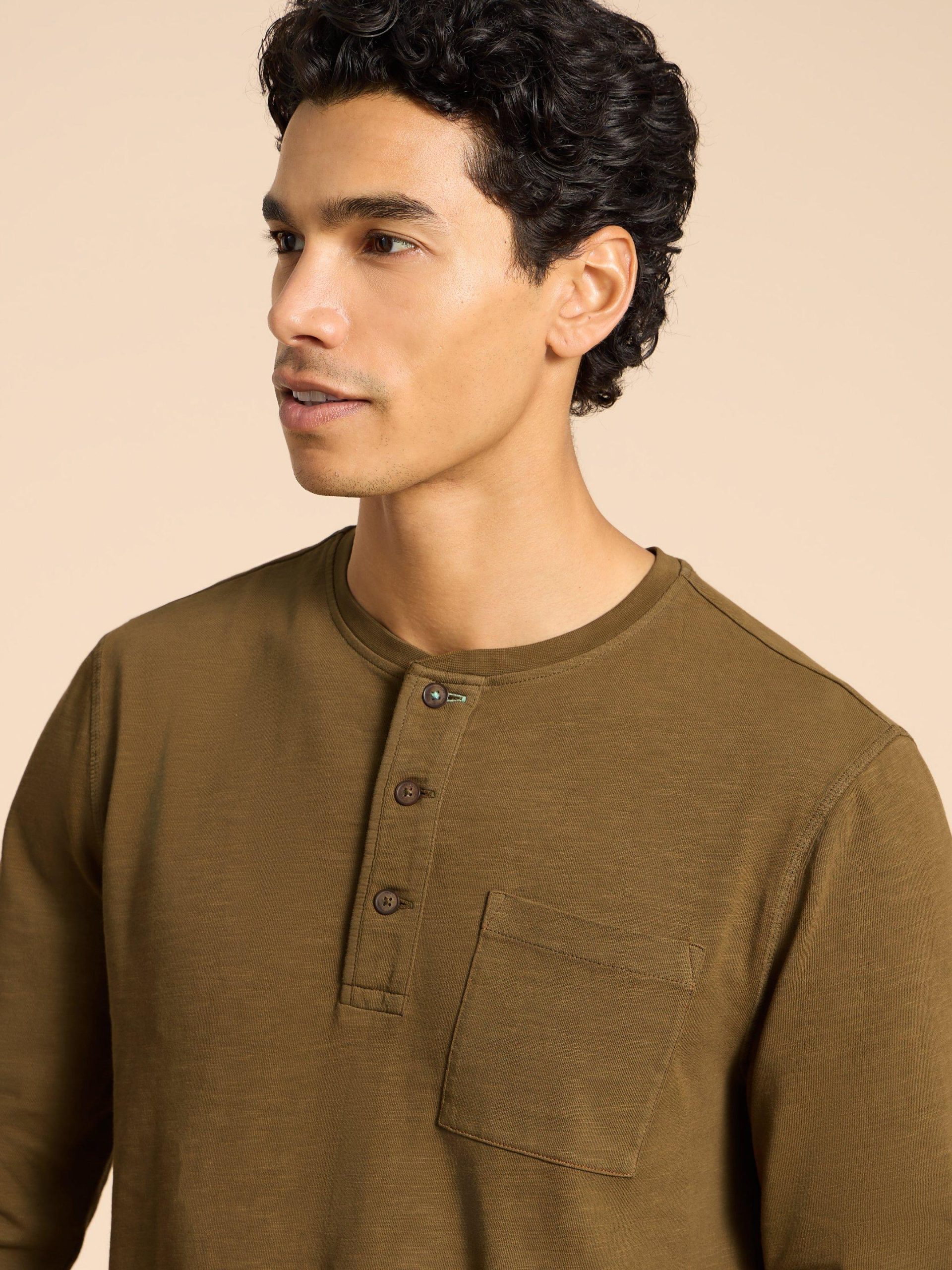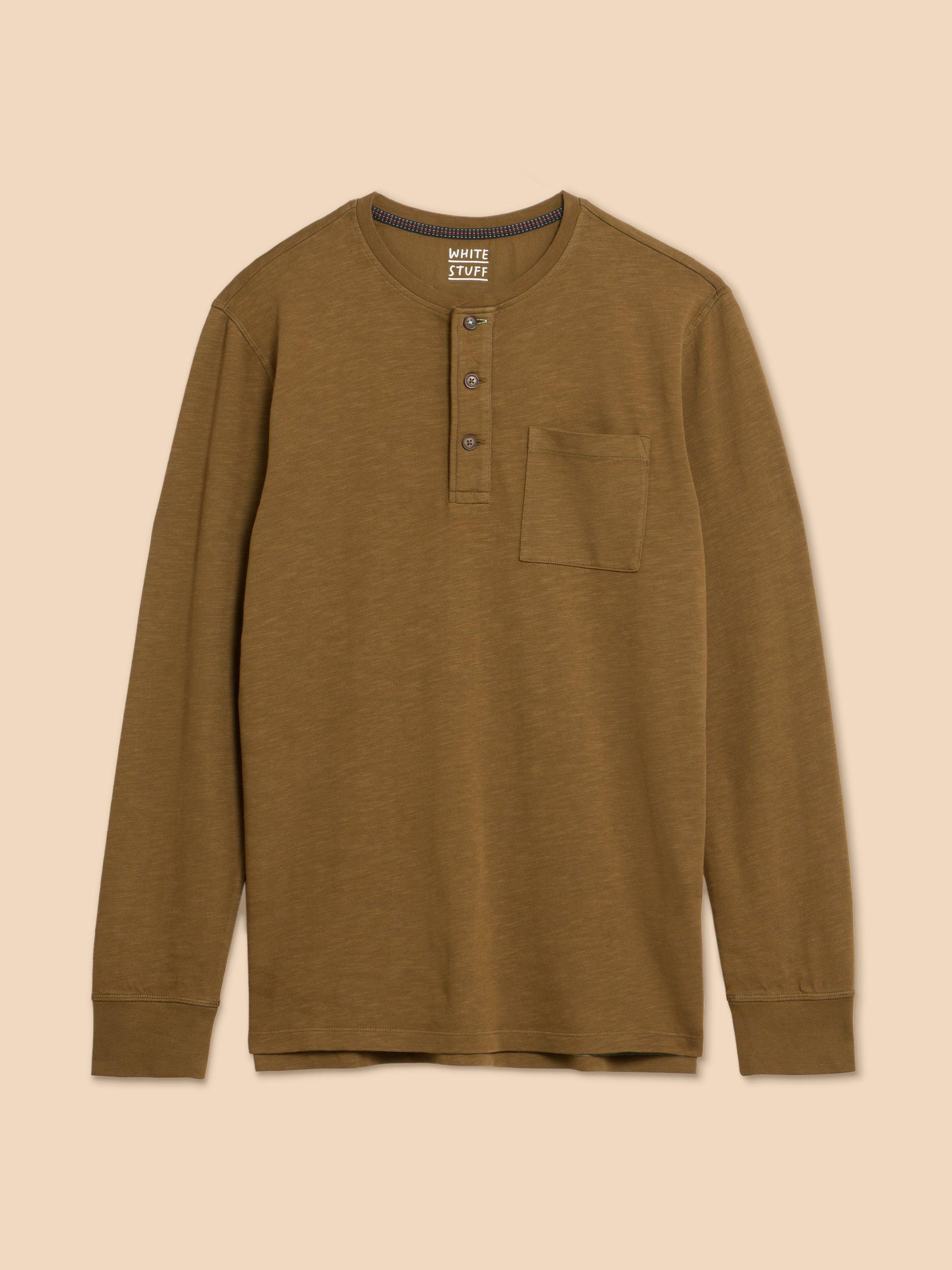 A classic, long-sleeved Henley with a practical twist (a chest pocket). Comes in two colours, for double the fun.