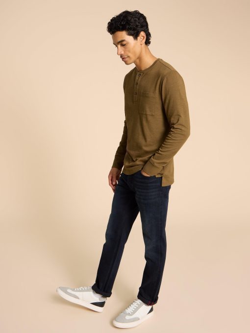A classic, long-sleeved Henley with a practical twist (a chest pocket). Comes in two colours, for double the fun.