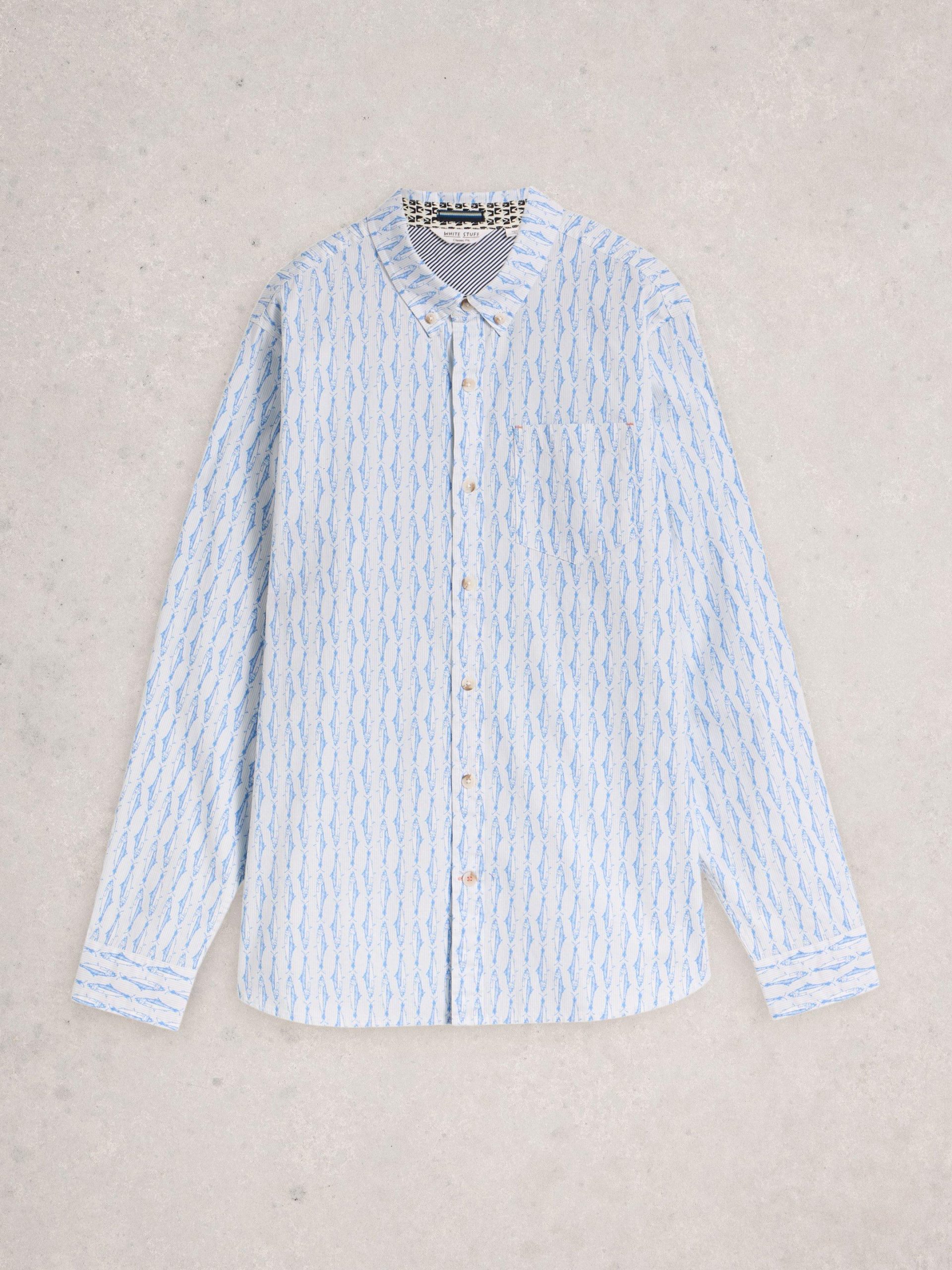 White Stuff Men’s Salcombe Fish Stripe Shirt | Blue Print
