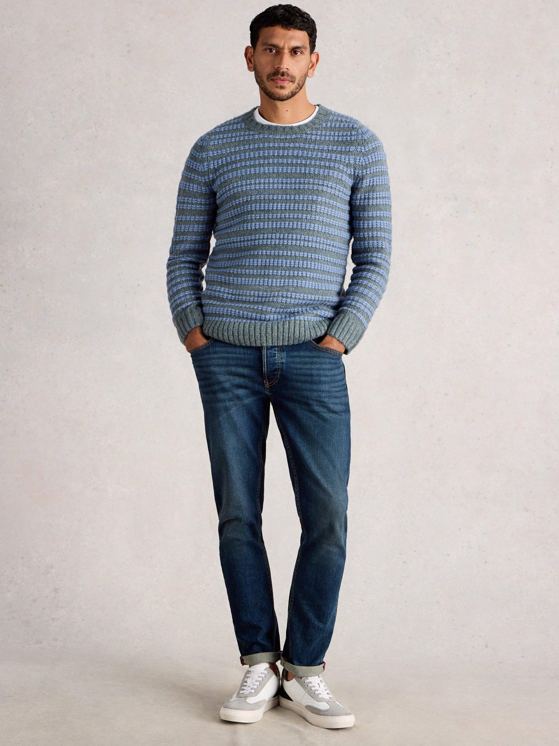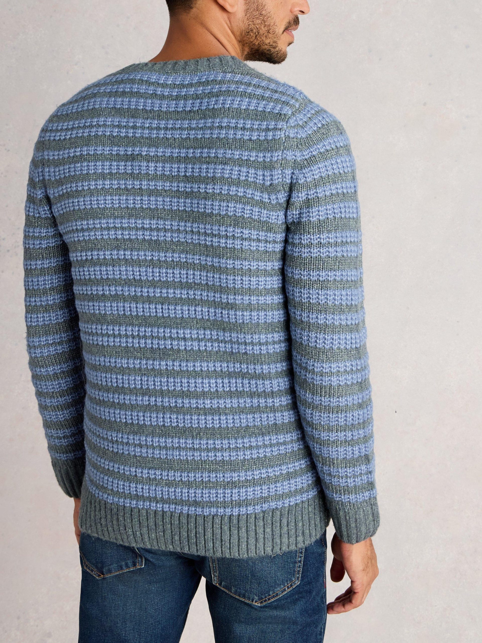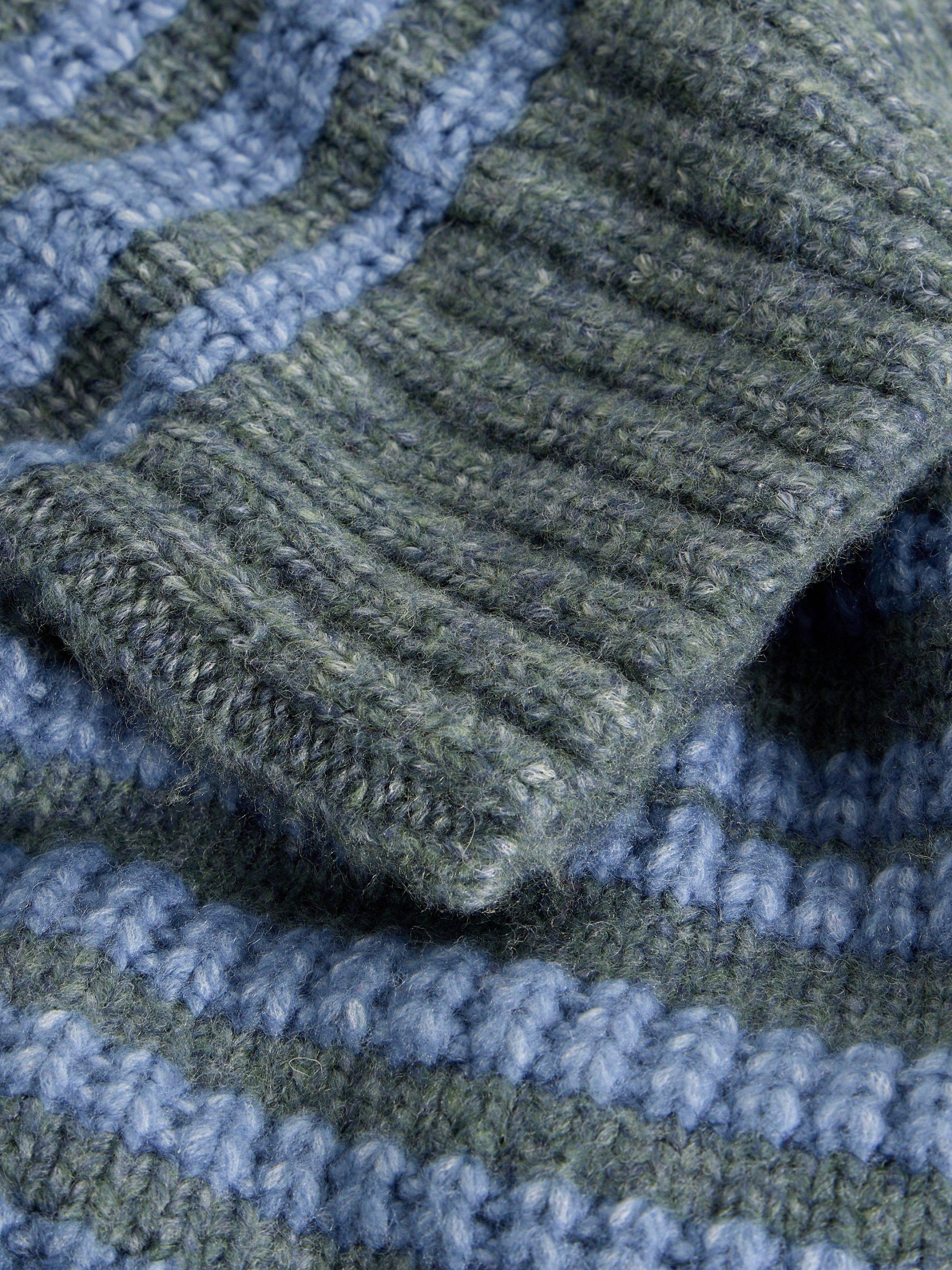 Put on the blues. And put this stripey blue knit on while you’re at it. We’re in the mood for dancing. (Even if it’s just to stay warm.)