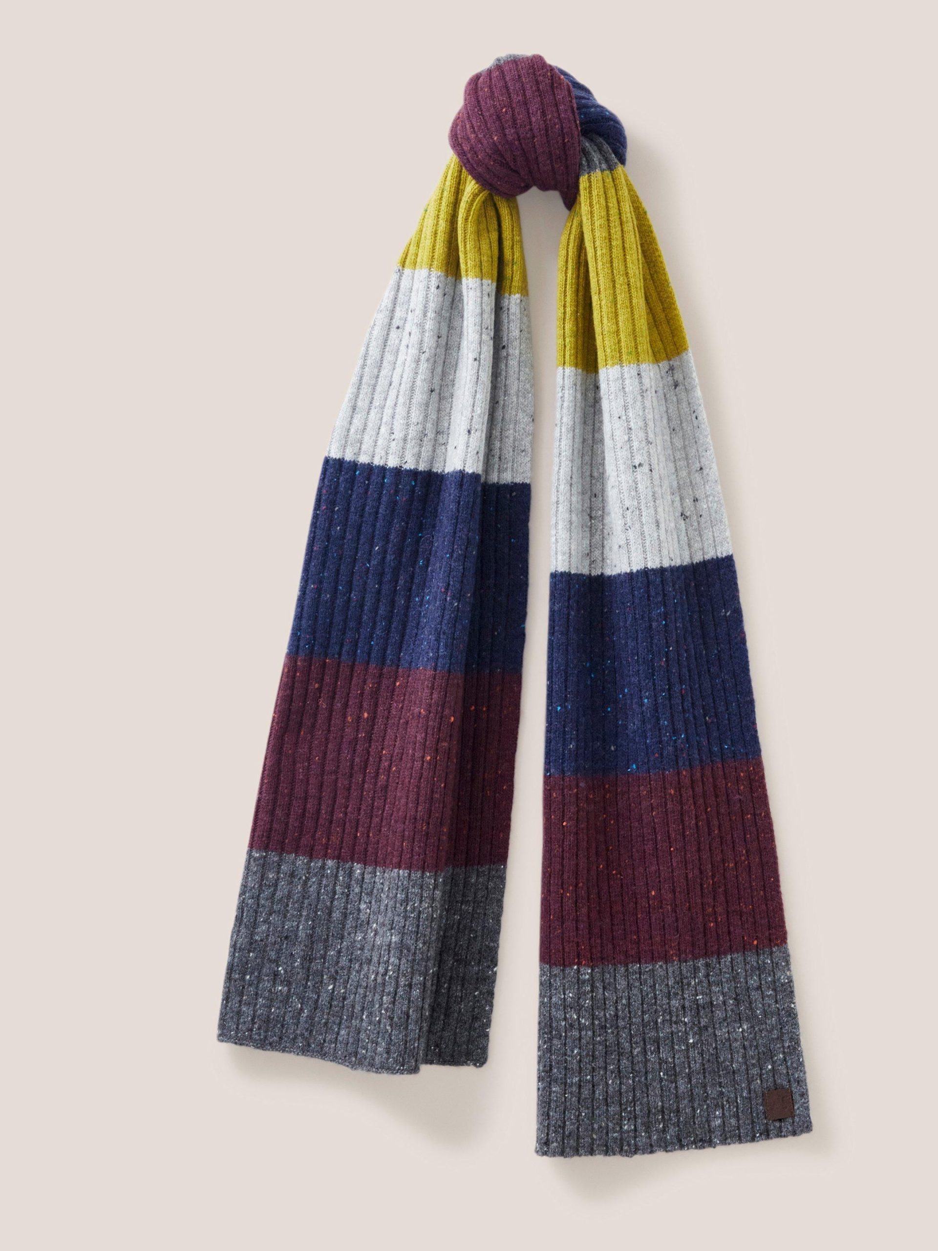 White Stuff Men’s Stripe Wool Ribbed Scarf | Grey Multi