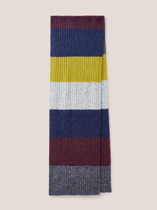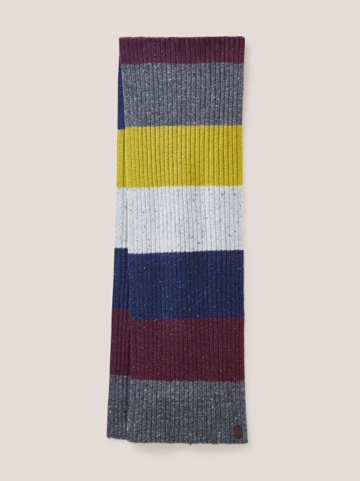 White Stuff Men’s Stripe Wool Ribbed Scarf | Grey Multi