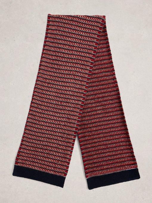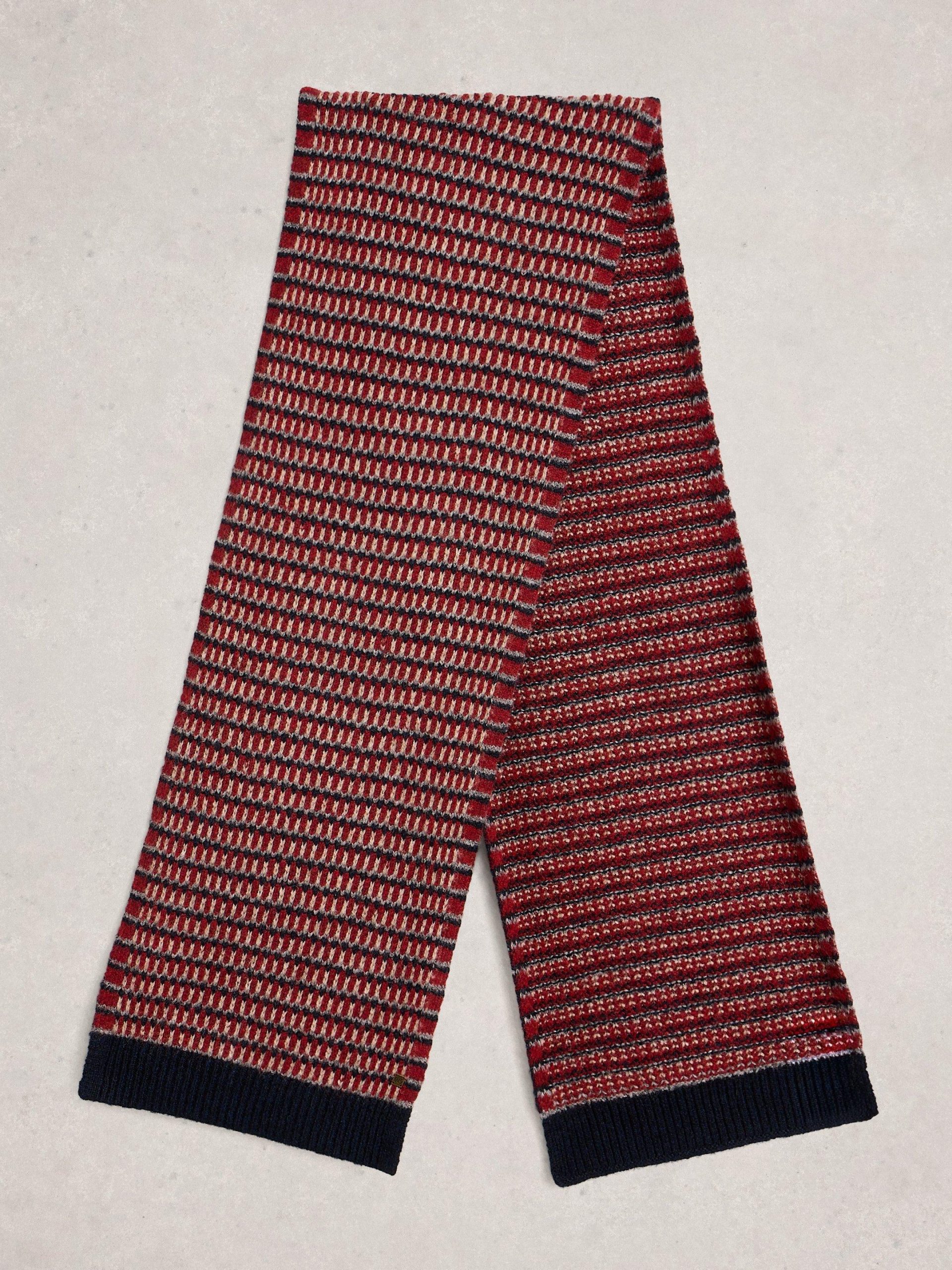 White Stuff Men’s Tuck Stitch Knitted Scarf | Red Multi