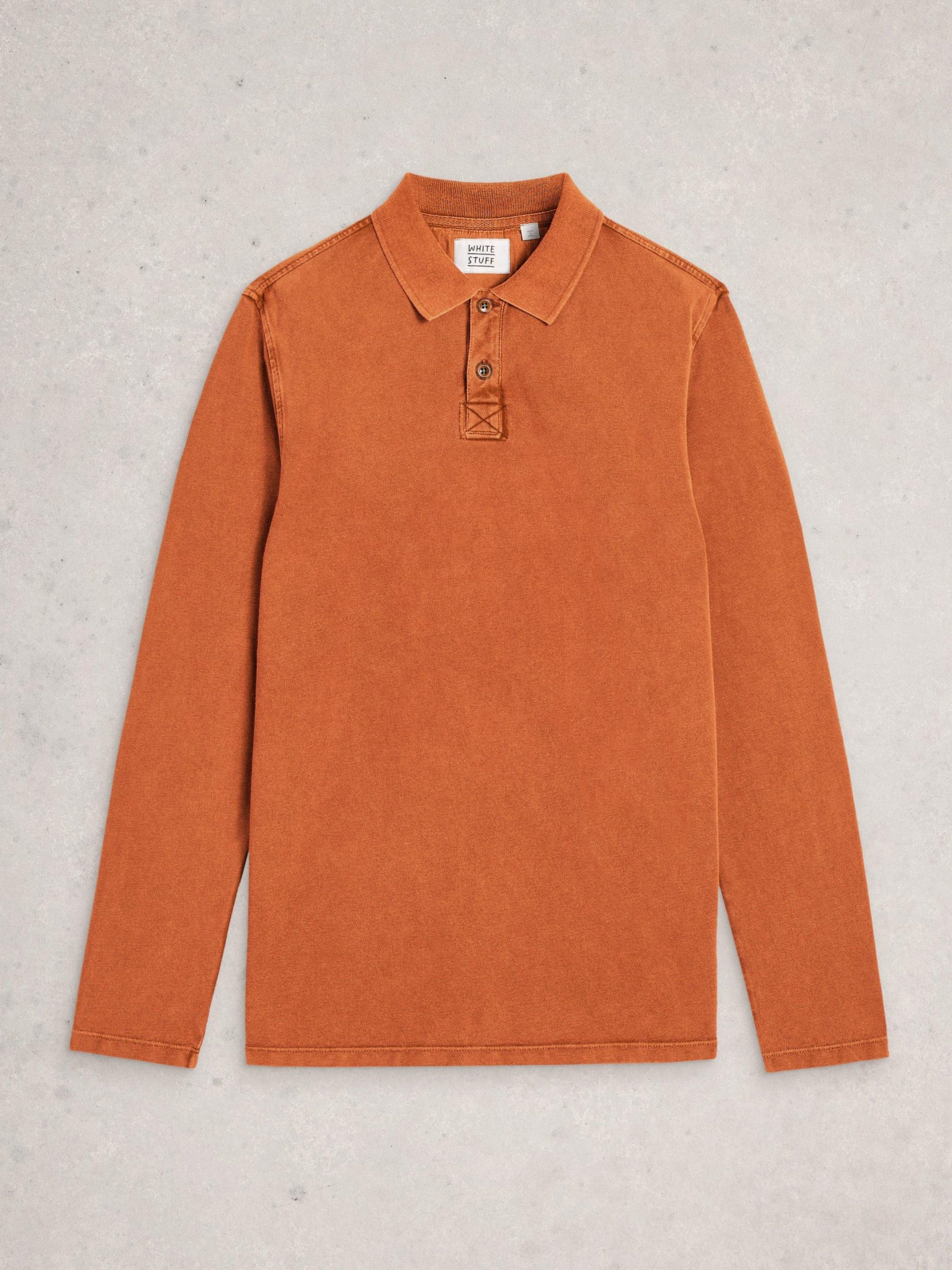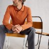 White Stuff Men’s Utility Long Sleeve Polo | Mid Orange