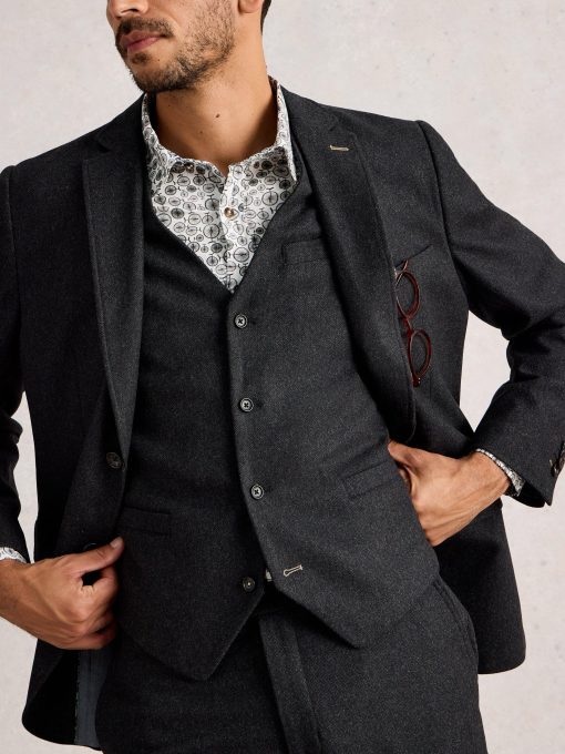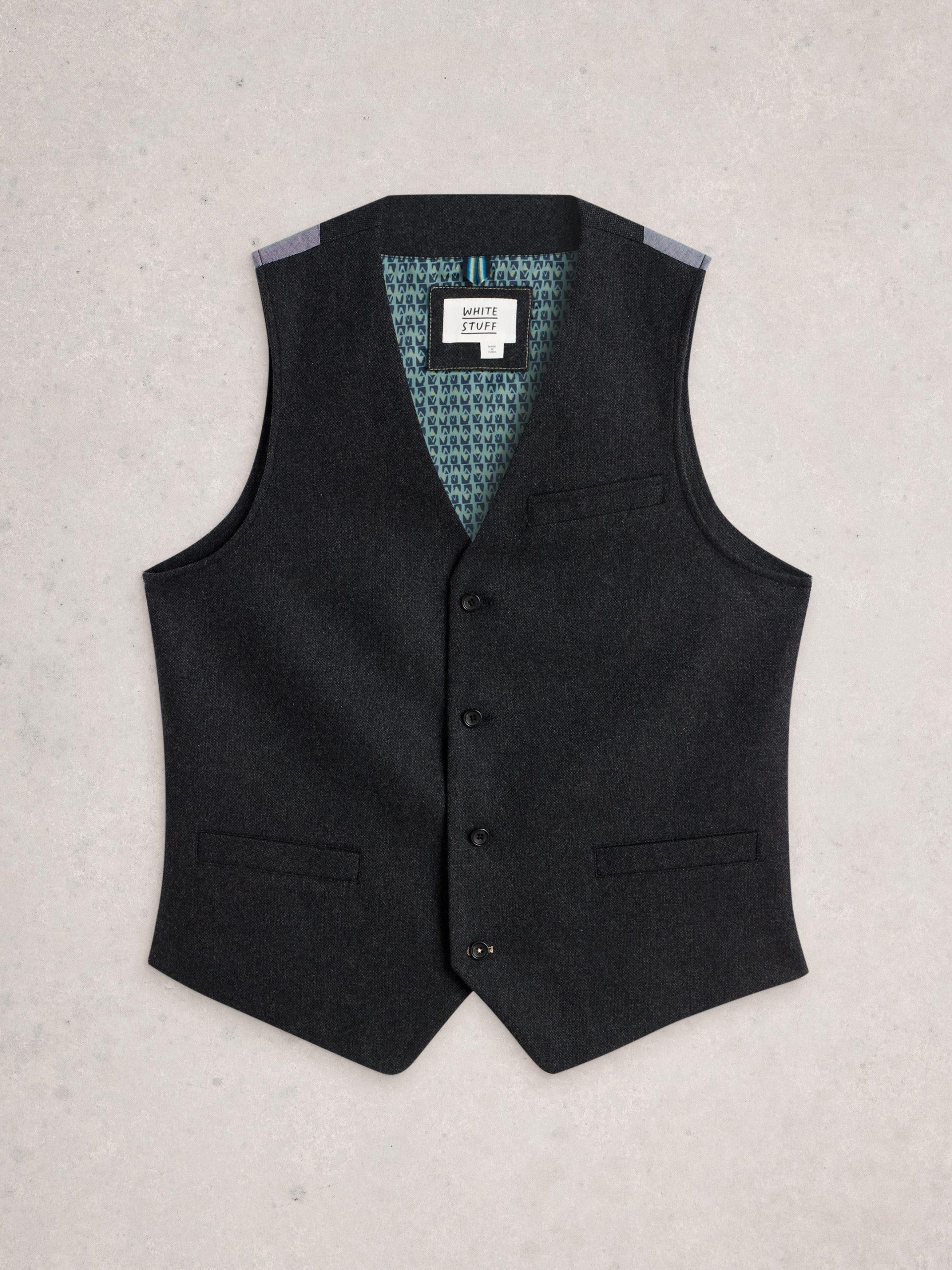 Adding a waistcoat to your wardrobe? A smart choice, if we do say so ourselves. This one’s made with a nice wool blend for a bit of warmth. Looks great over a crisp shirt. Even better with the matching blazer and trousers. Weddings, work and popping down to the shops in style: here you come.