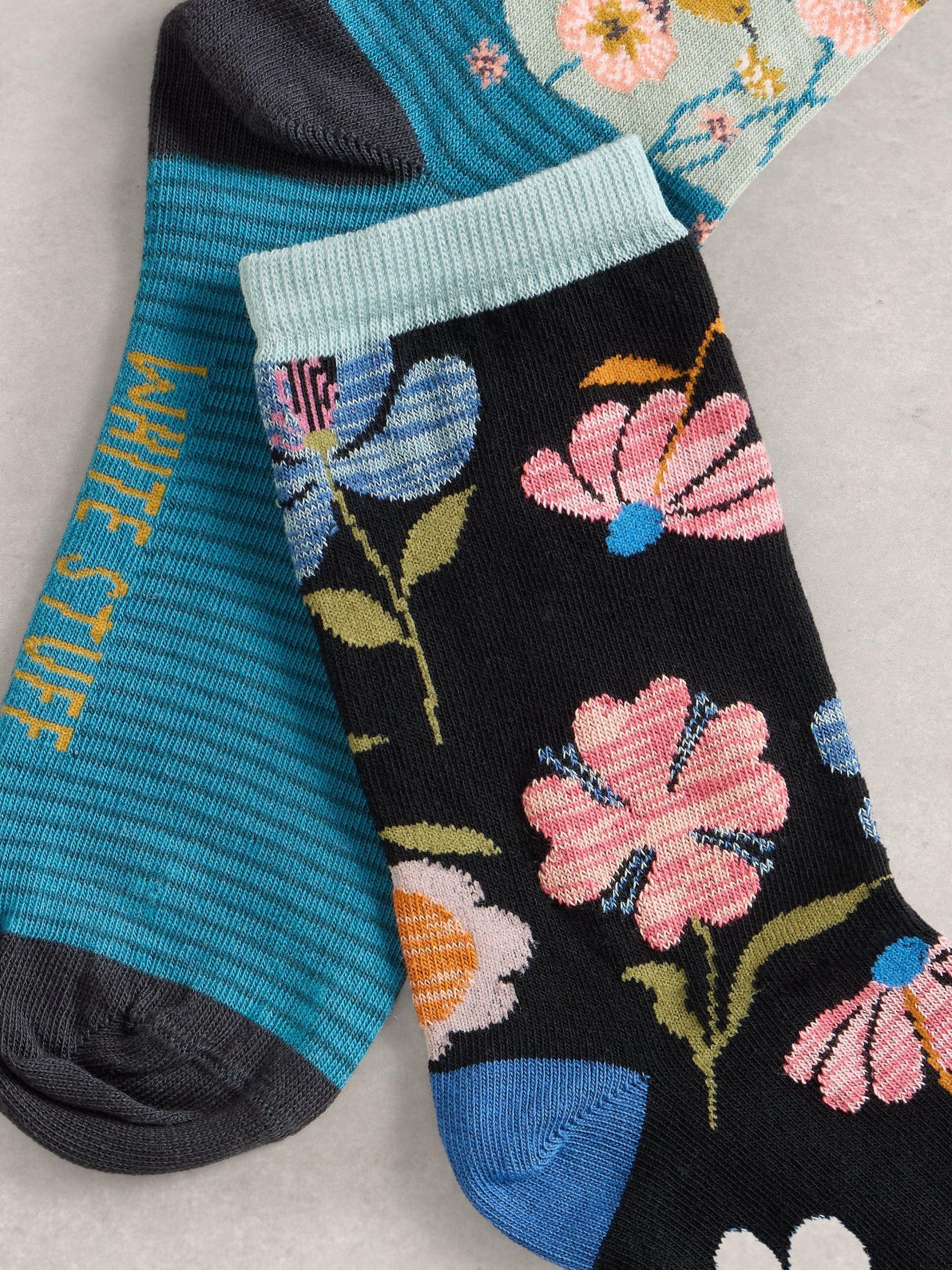 White Stuff Women’s 2 Pack Floral Ankle Socks | Navy Multi