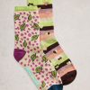 White Stuff Women’s 2 Pack Multi Print Ankle Socks | Green Multi