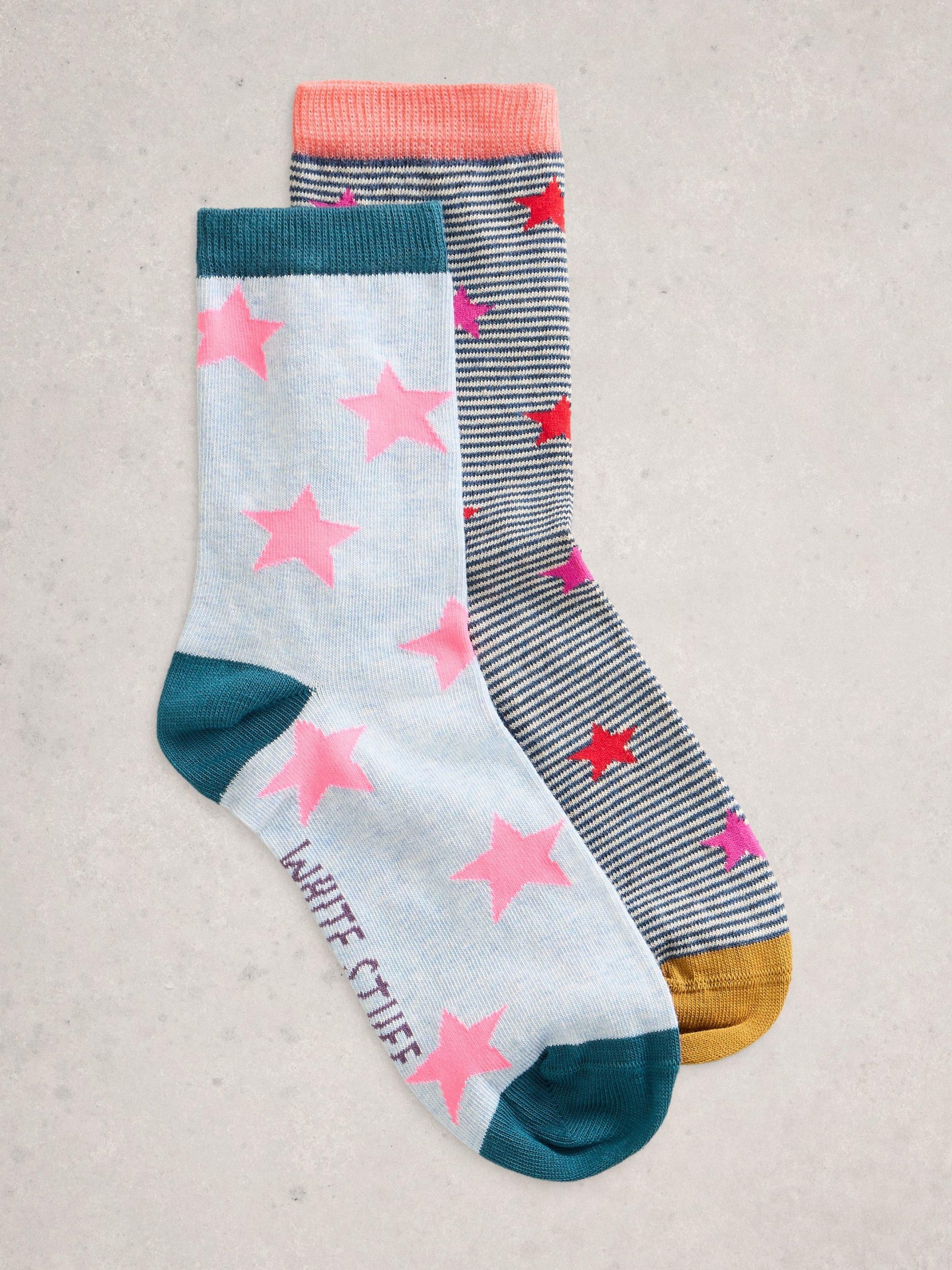 White Stuff Women’s 2 Pack Star Ankle Socks | Grey Multi