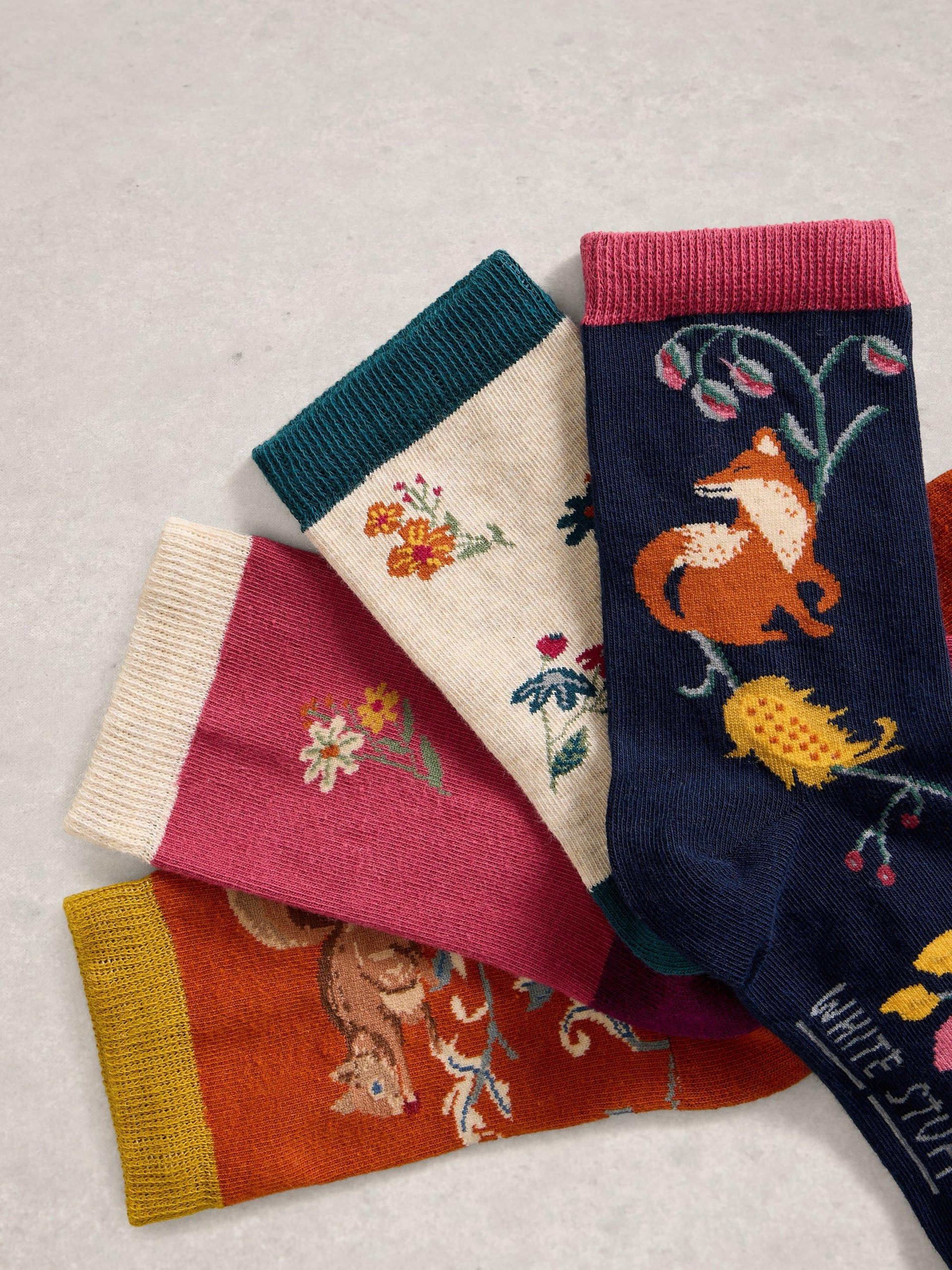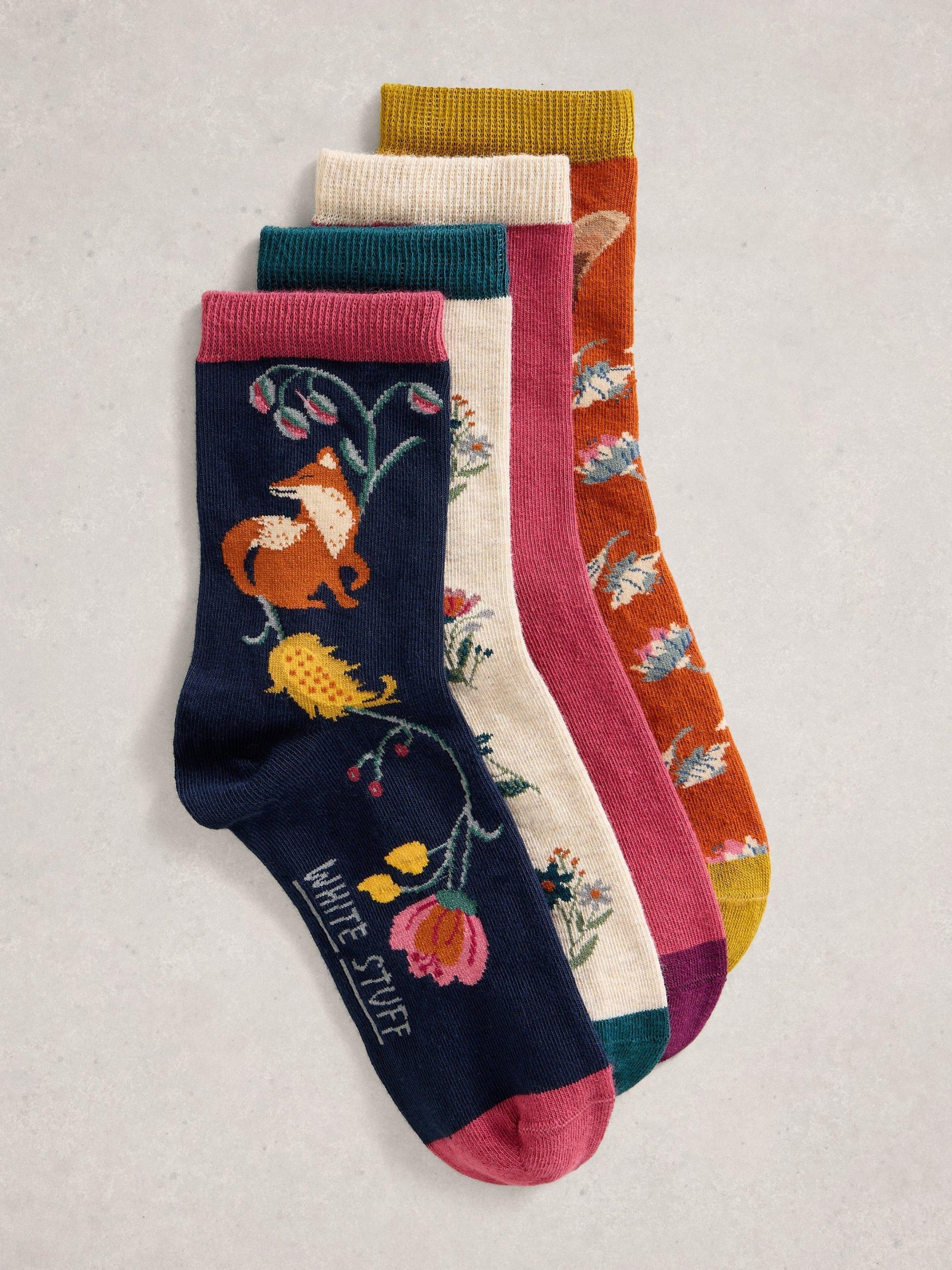 White Stuff Women’s 4 Pack Woodland Ankle Socks | Navy Multi