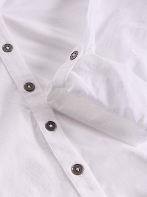 A stylish everyday shirt. With textured sleeves and a jersey front and back. So comfy you could sleep in it (although, it’s better if you don’t).