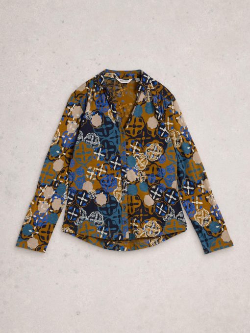 White Stuff Women’s Annie Collared Shirt Jersey | Chartreuse Multi