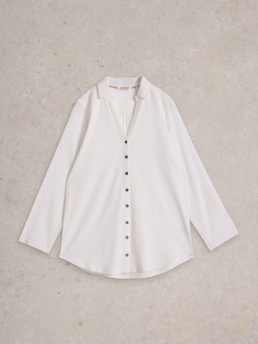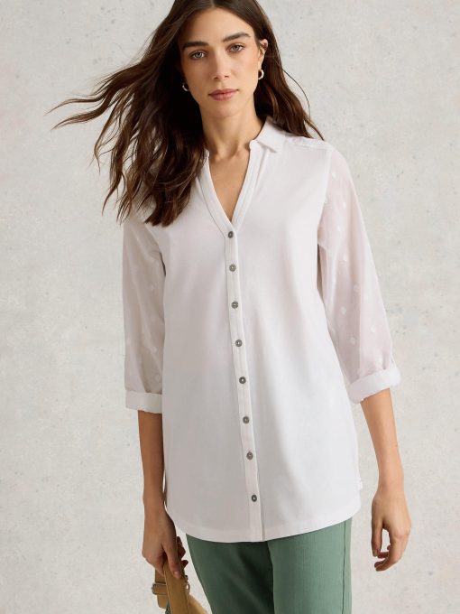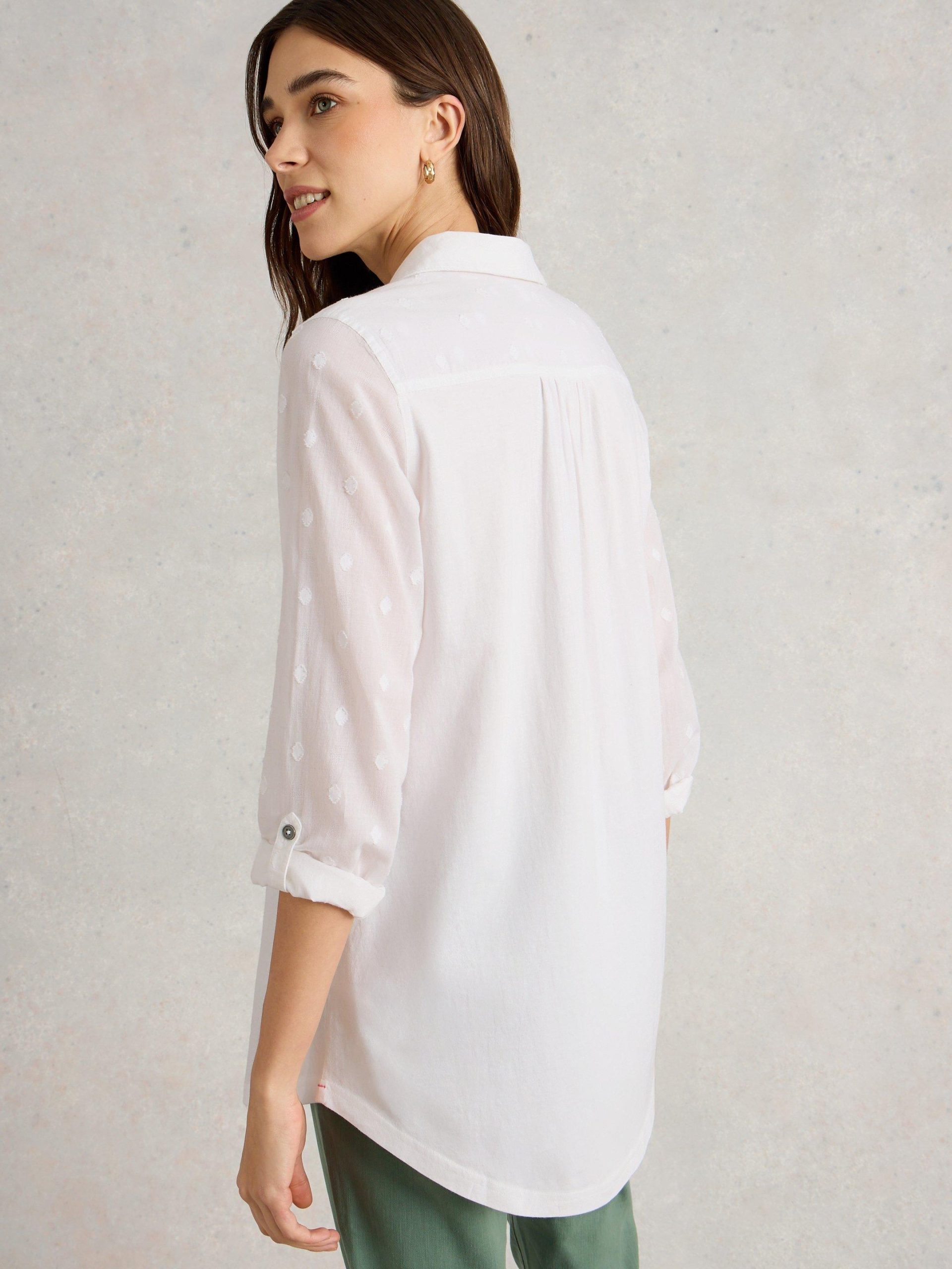 We know you love our Annie shirt. So we made this one a bit longer. And added some woven sleeve detailing. (More to love.)