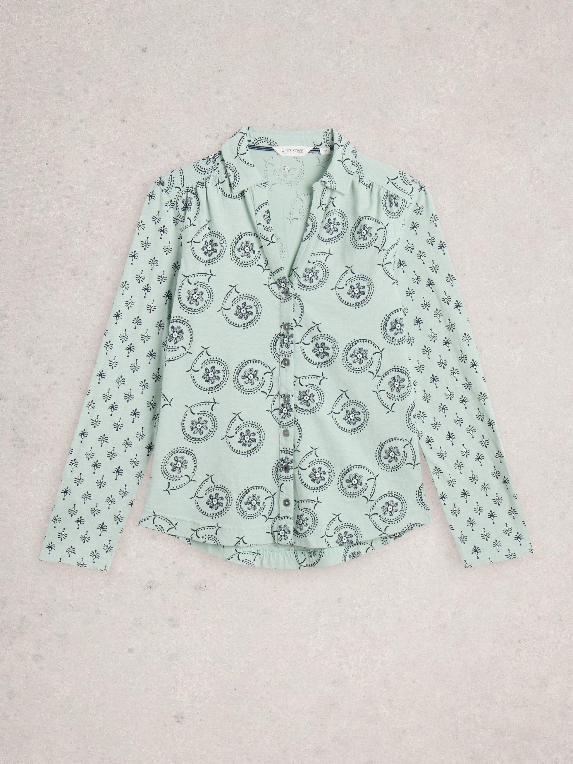 White Stuff Women’s Annie Jersey Mid Length Shirt | Green Print