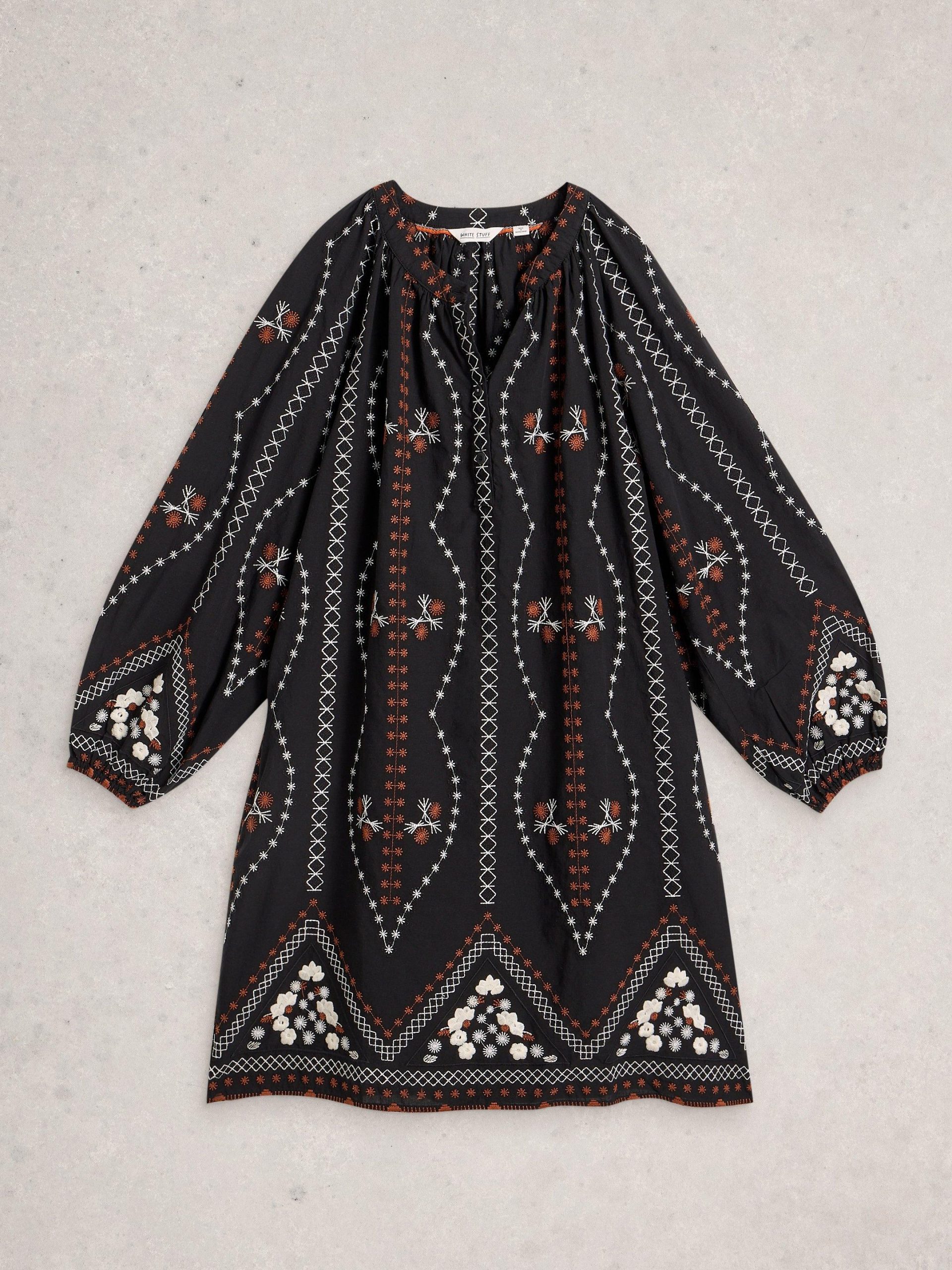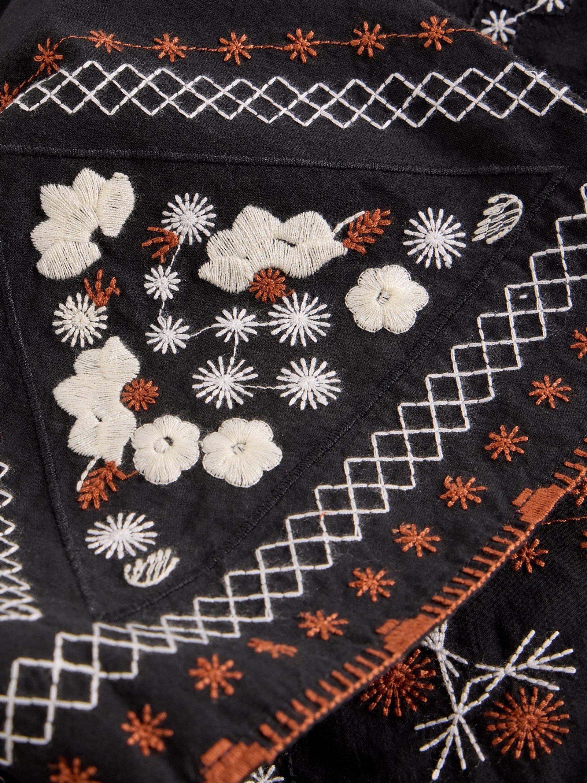 A bit of folksy flair for your wardrobe. All-over embroidery and billowy sleeves for a bohemian touch. Just pair with slouchy boots. And a floppy hat, if you have one.