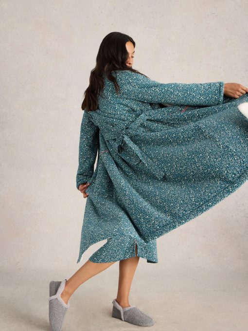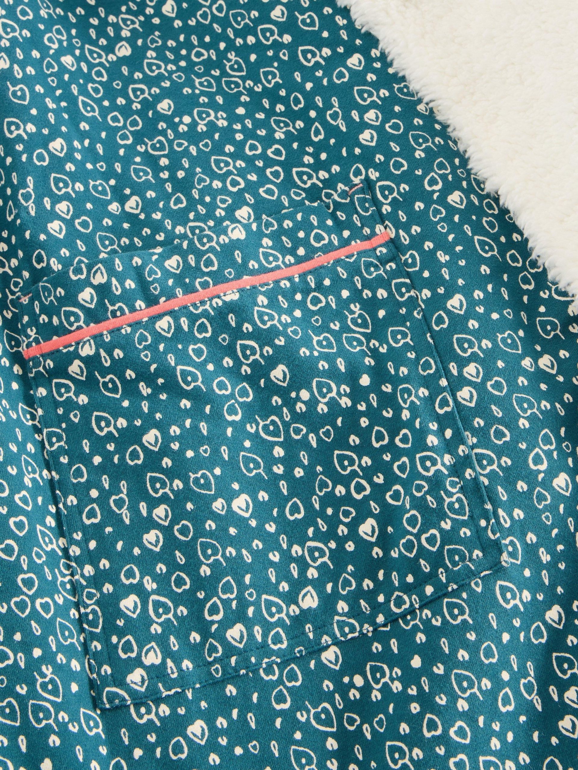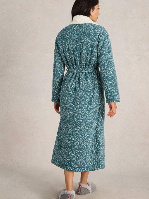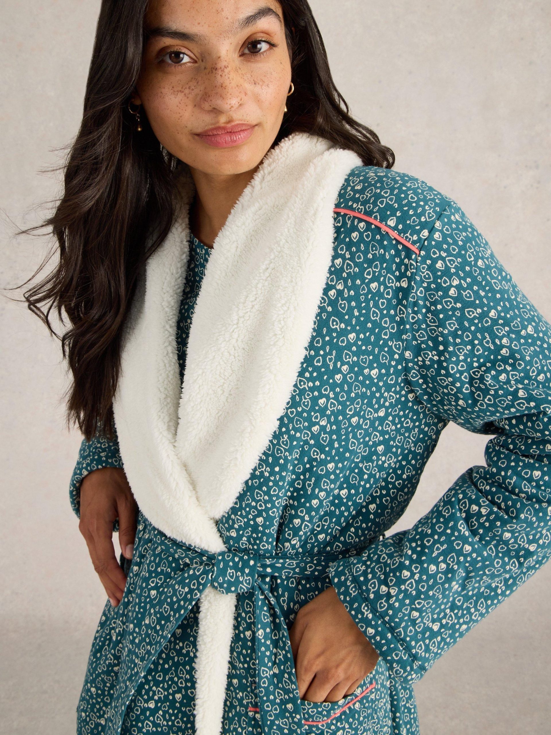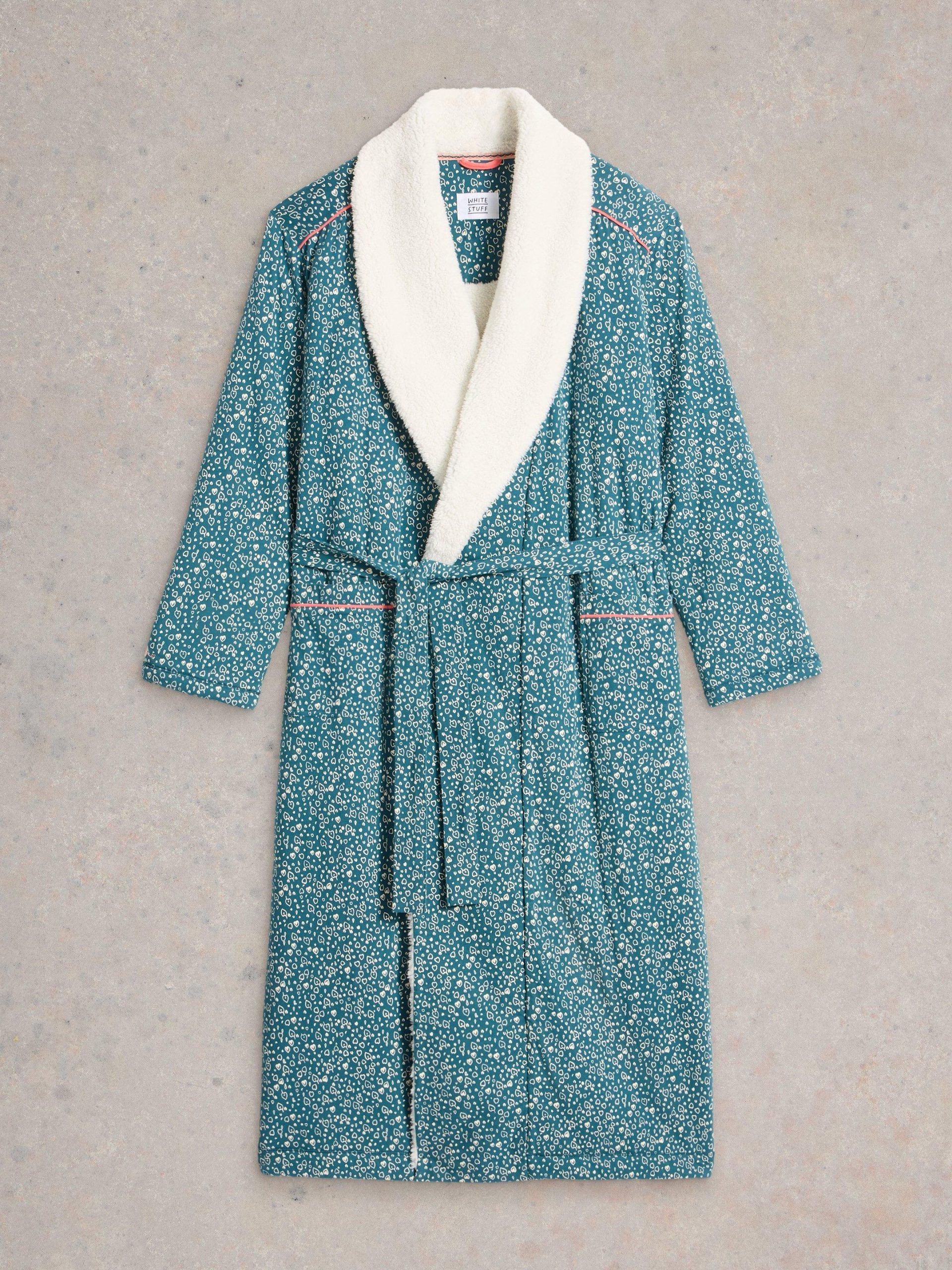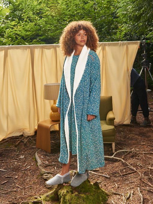 A super cosy dressing gown with a fluffy lining and patch pockets. Rushing around is virtually impossible.