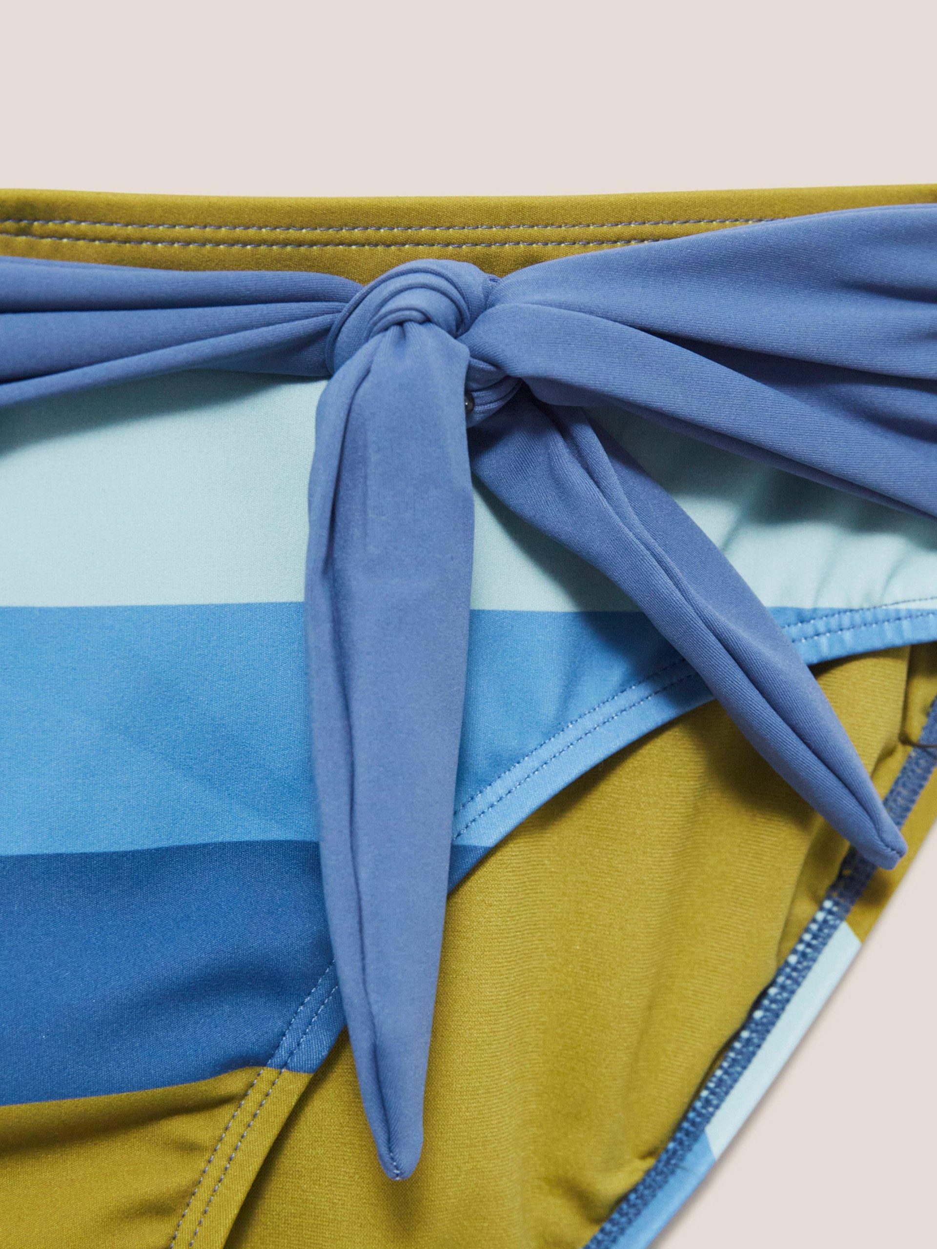 These bikini bottoms’ high leg, stripe print and knot detailing are making quite the splash.