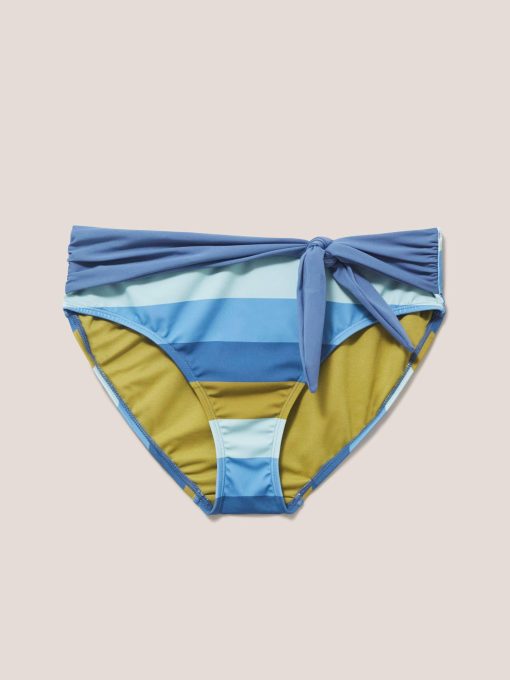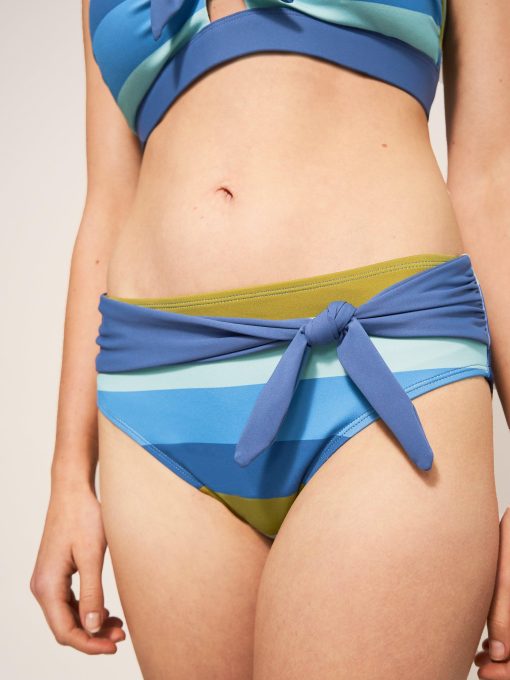 These bikini bottoms’ high leg, stripe print and knot detailing are making quite the splash.