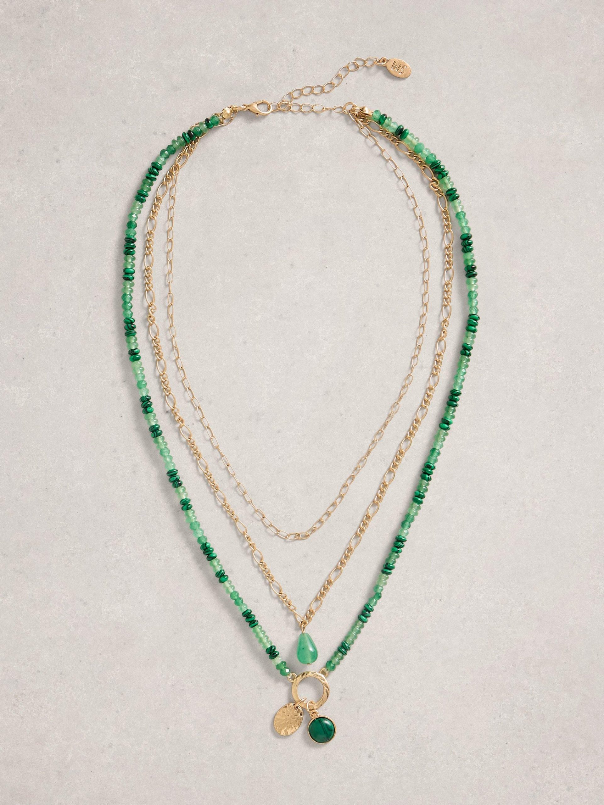 Layers, beads and drops of green. Plenty of reasons to love this necklace.