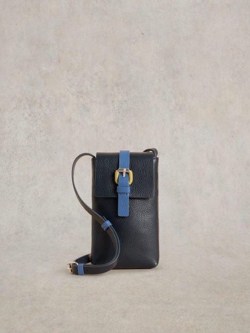 White Stuff Women’s Clara Buckle Leather Phone Bag | French Navy