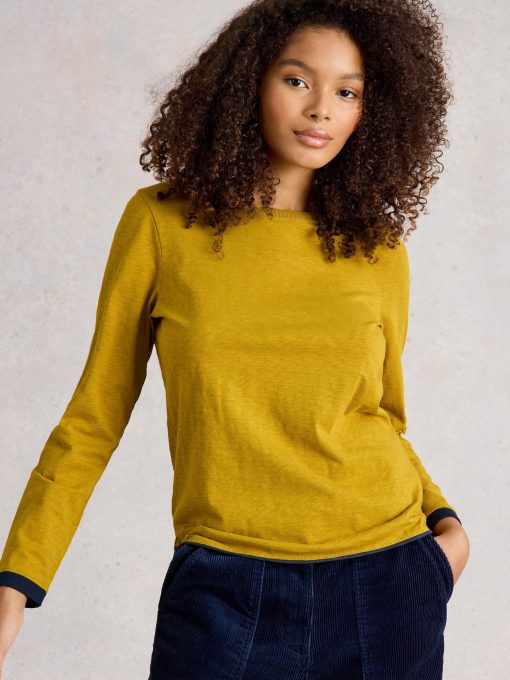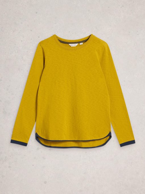 White Stuff Women’s Clara Crew Neck Long Sleeve Tee | Mid Chartreuse