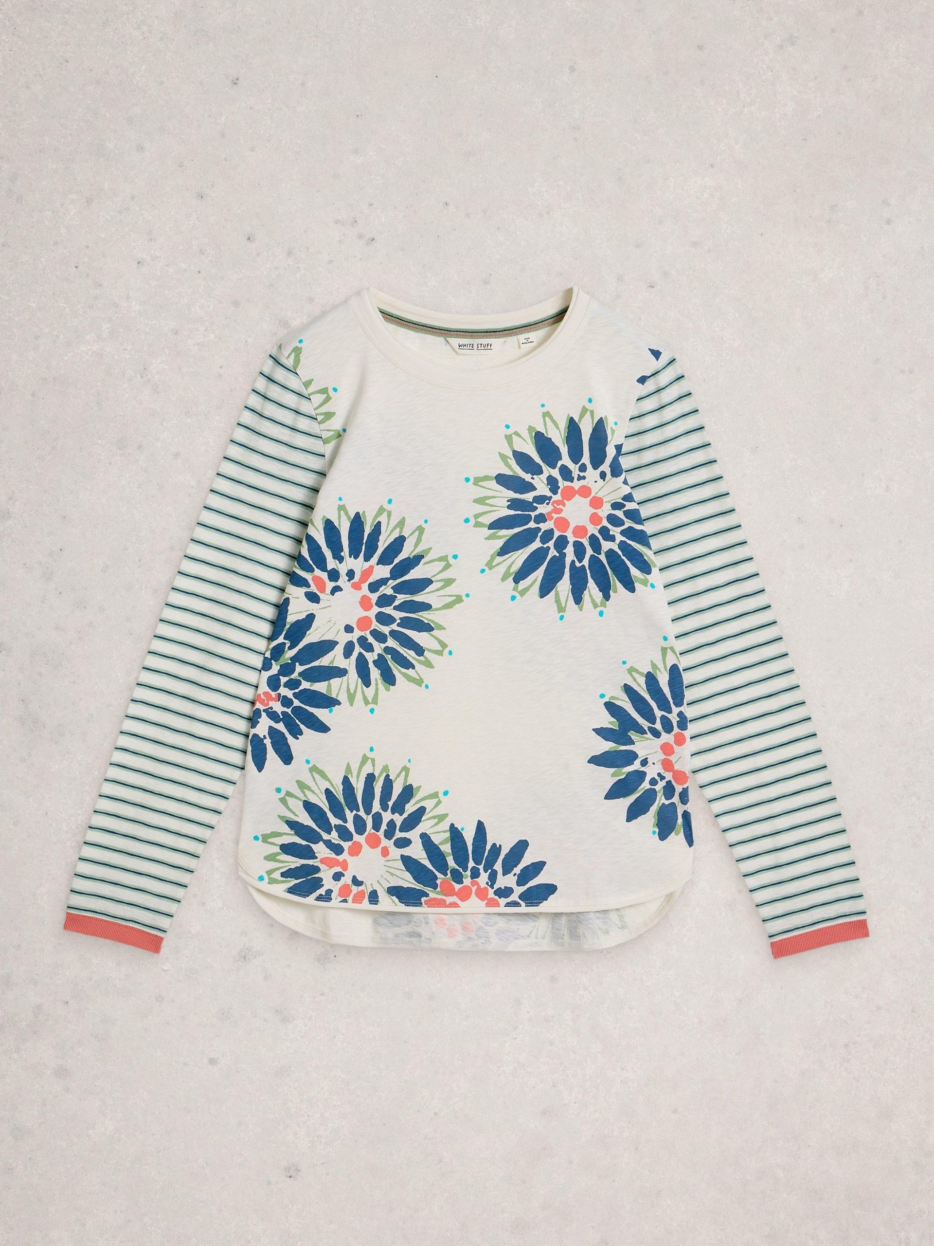 White Stuff Women’s Clara Crew Neck Long Sleeve Tee | White Multi