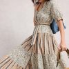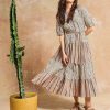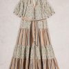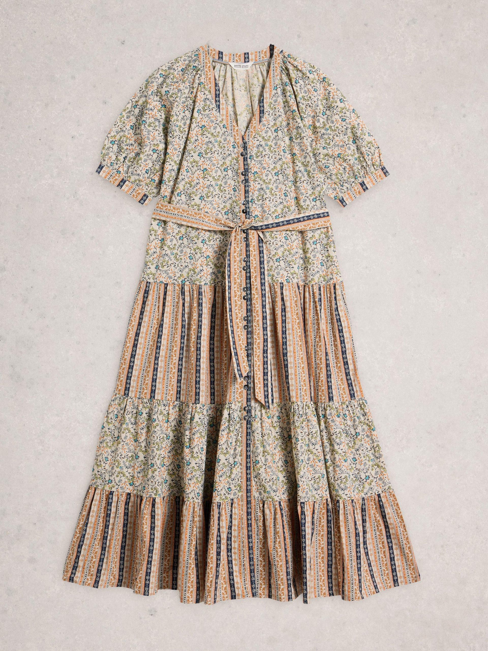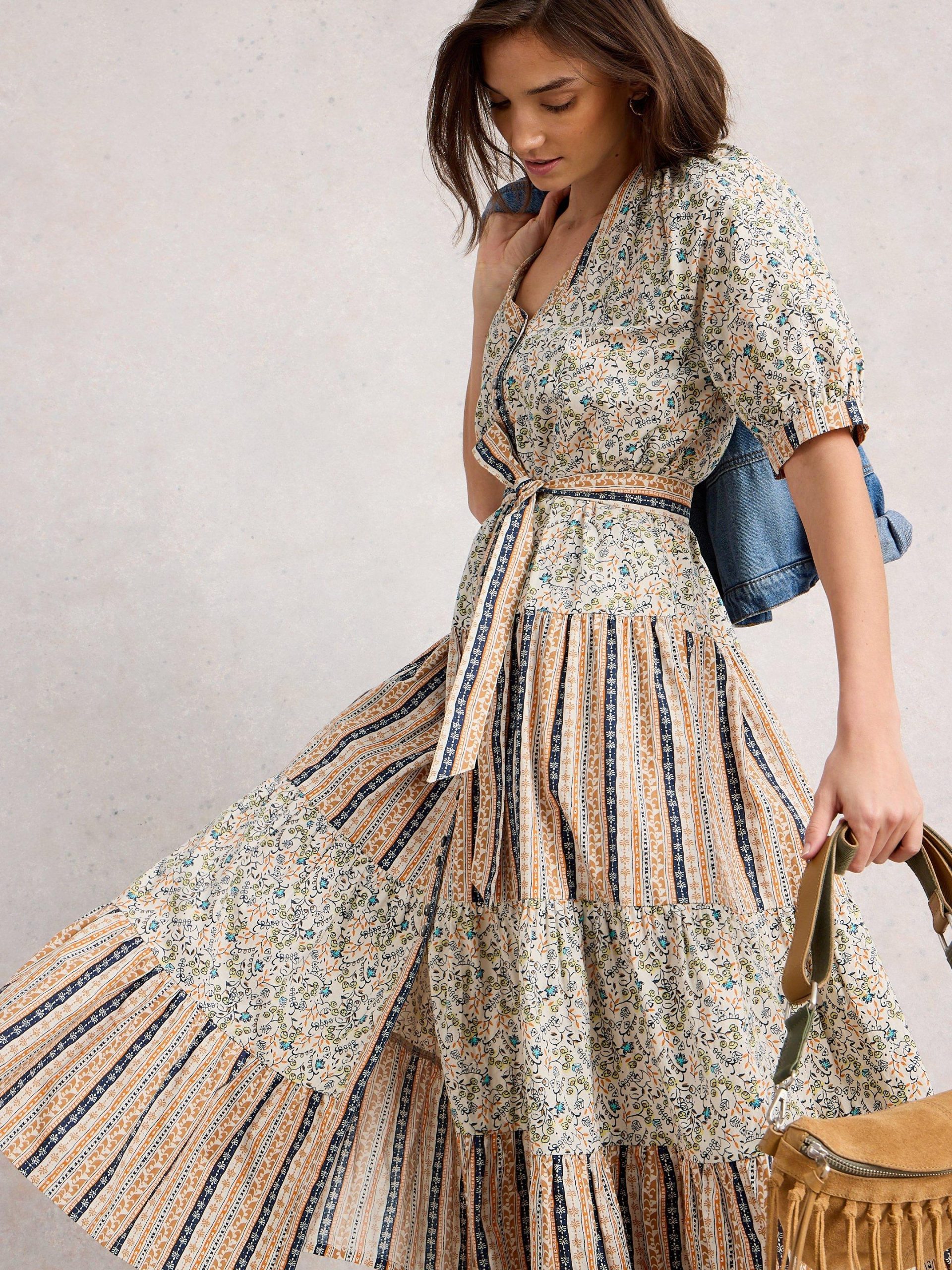 A dreamy midi with a patchwork-style print. It’s tiered. Has a tie-waist detail. And it reminds us of weekend getaways somewhere warmer. Soaking in the last few hours of sun.