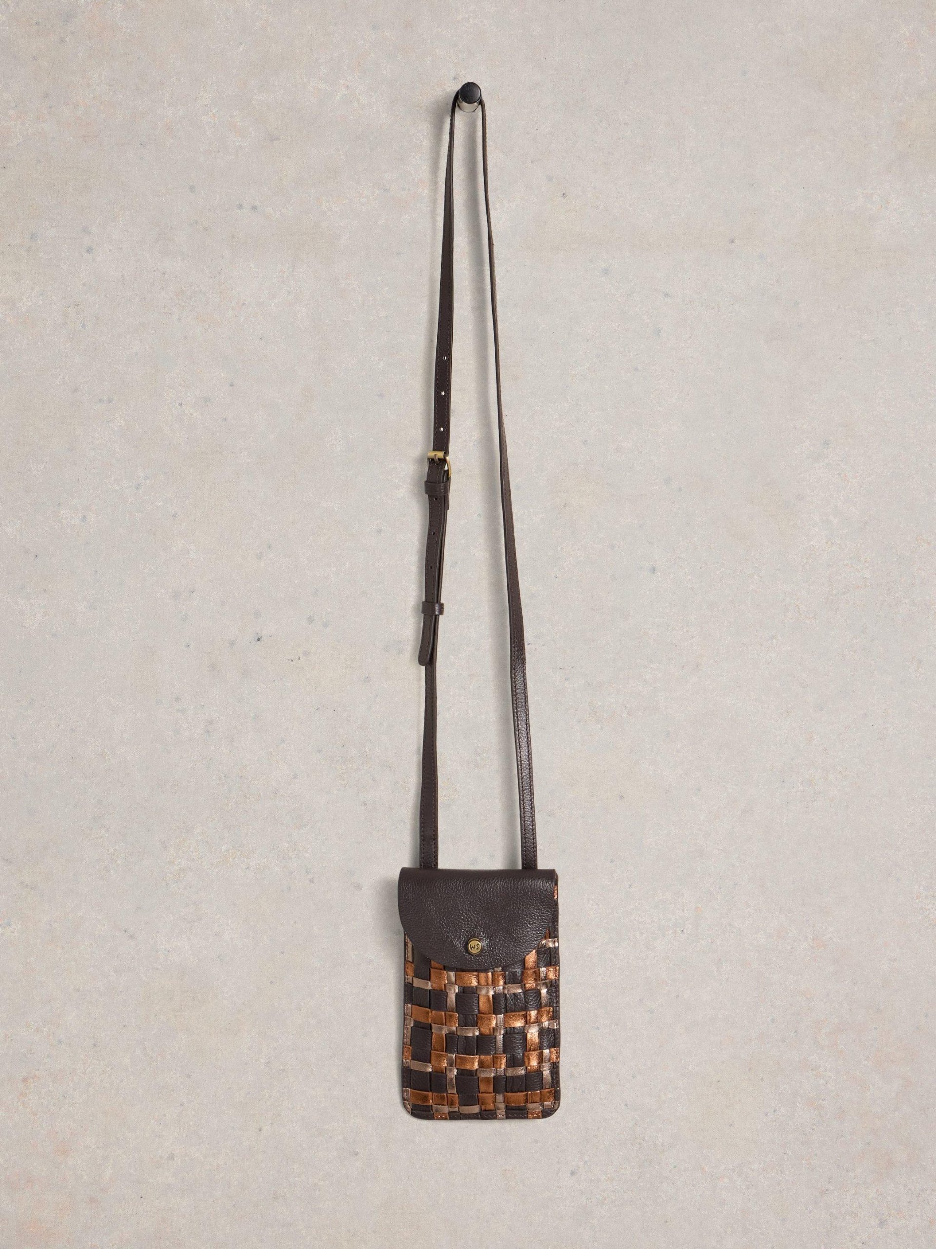 White Stuff Women’s Coco Weave Leather Phone Bag | Brown Multi