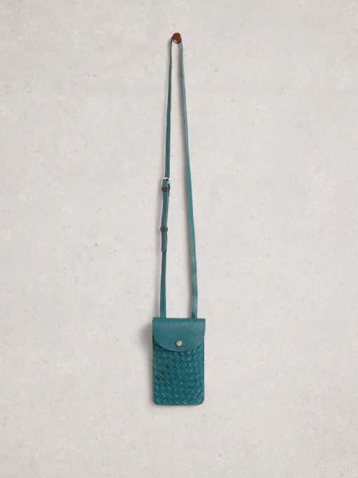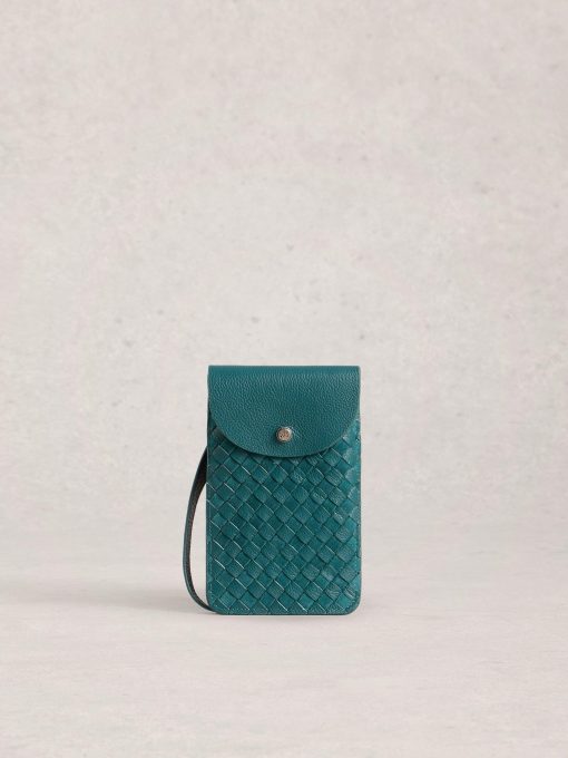 White Stuff Women’s Coco Weave Leather Phone Bag | Dk Teal