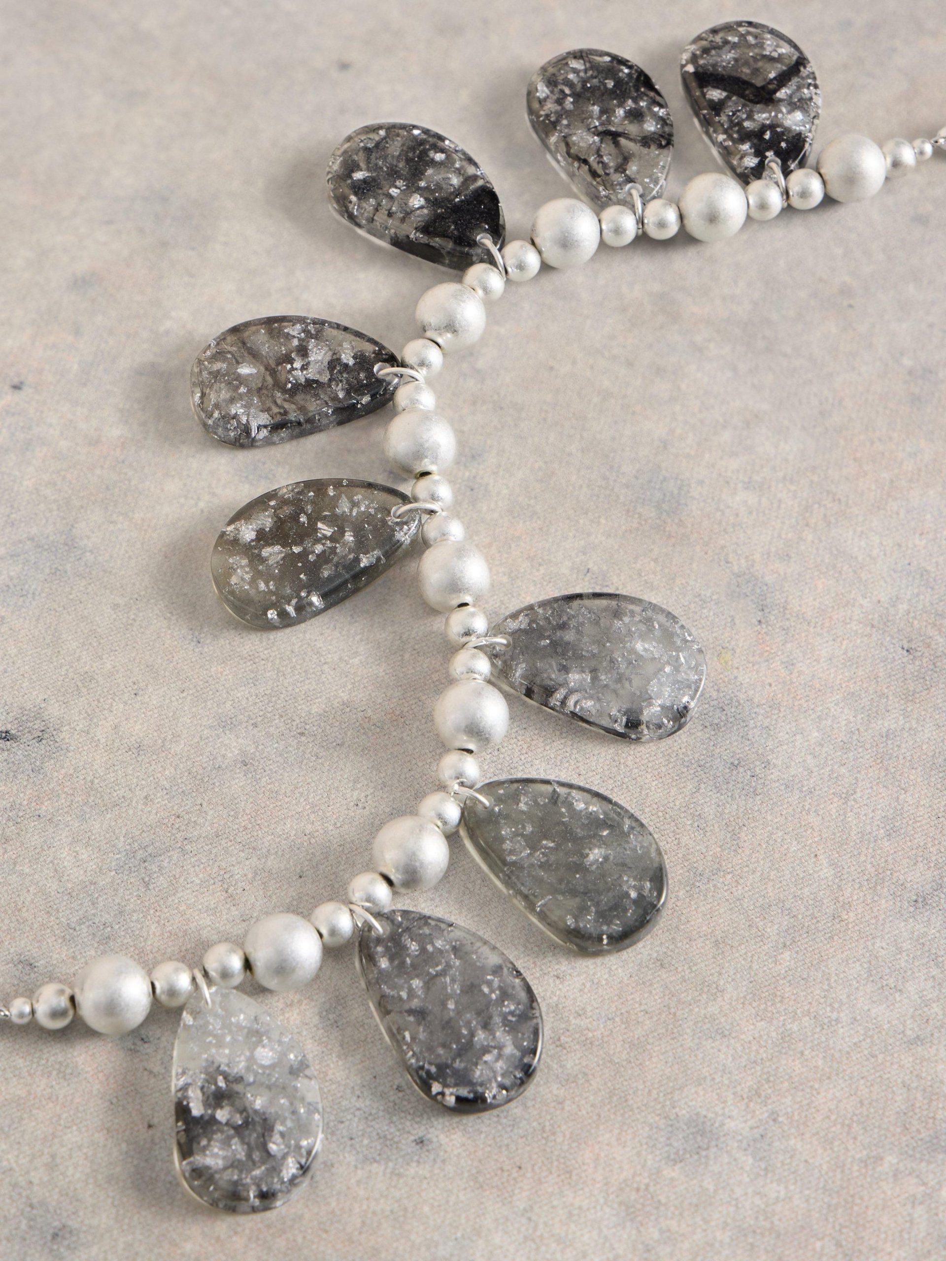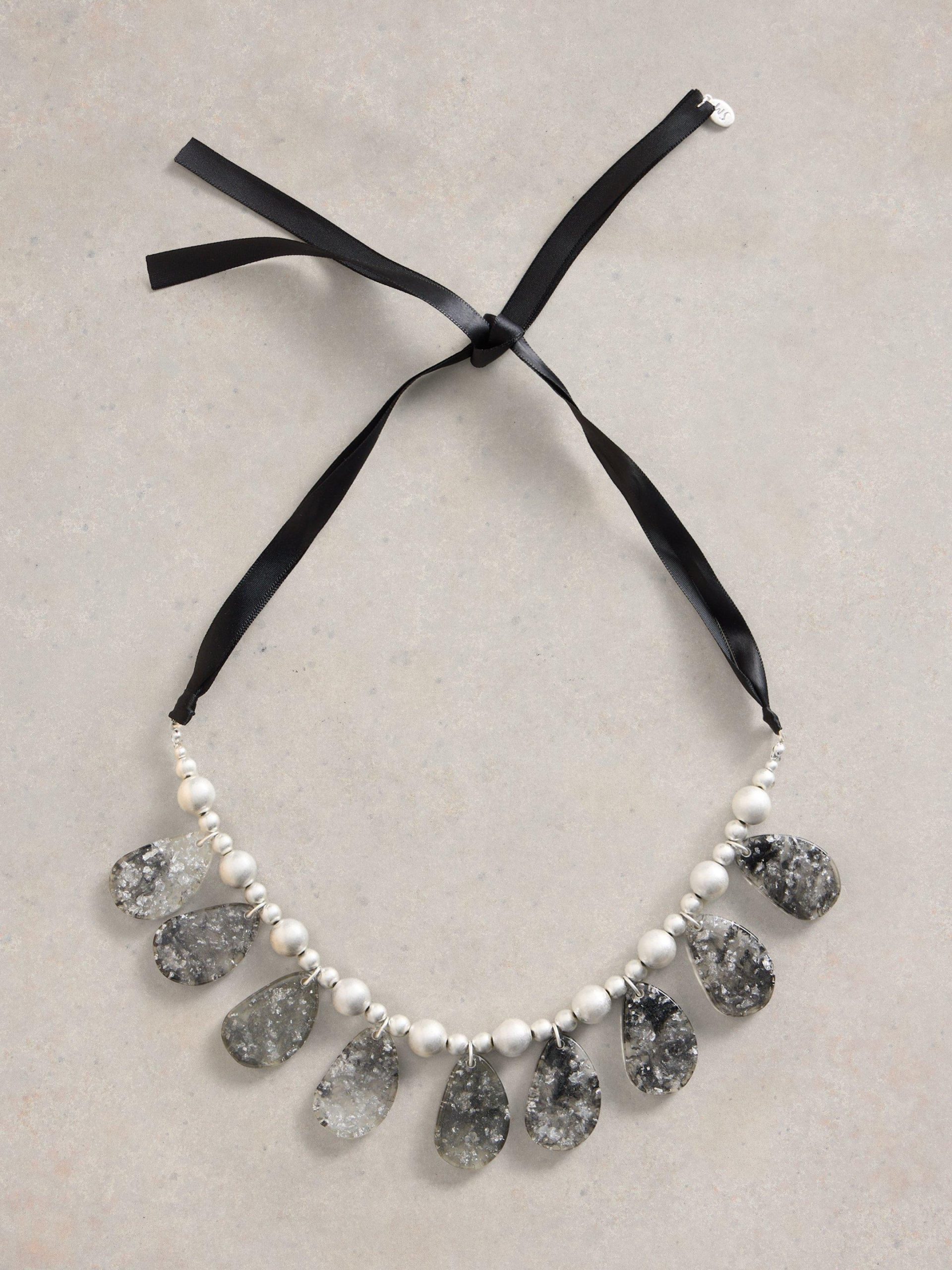 White Stuff Women’s Daisy Resin Ribbon Necklace | Dusty Grey