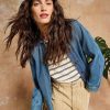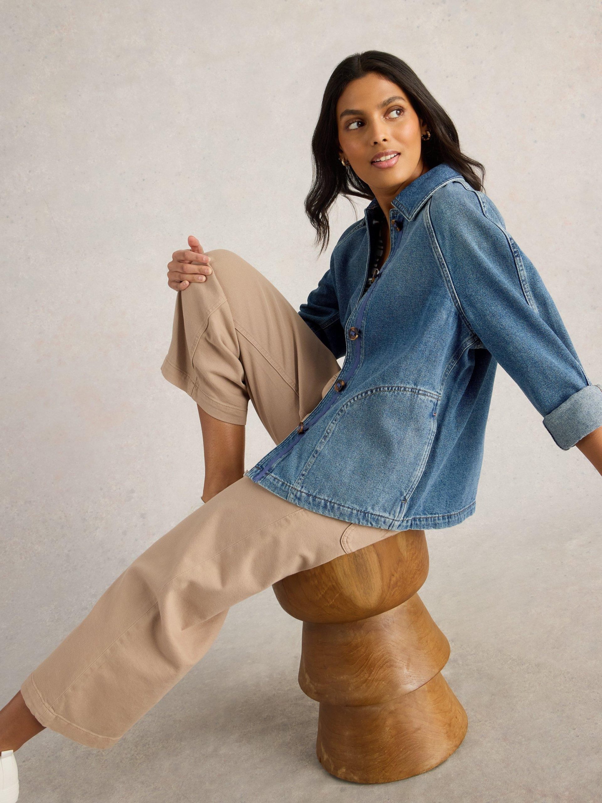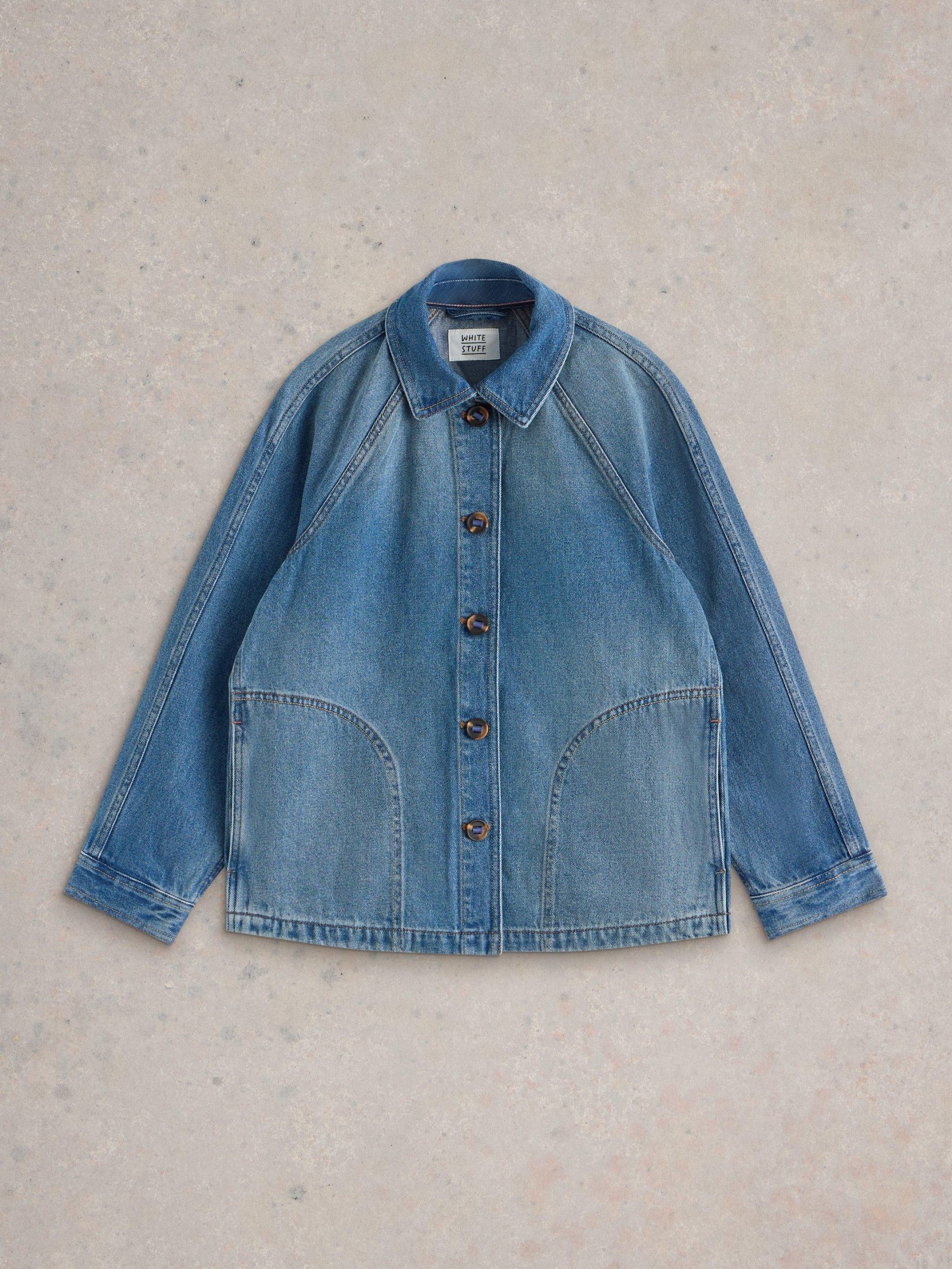 The denim jacket we’re wearing everywhere. Slightly oversized and raglan-sleeved, for that put-together, effortlessly-undone look. Go classically casual with a pair of chinos, or double down on double denim (if you dare).nThis piece is designed to be oversized so we recommend sizing down if you’d like a neater fit.