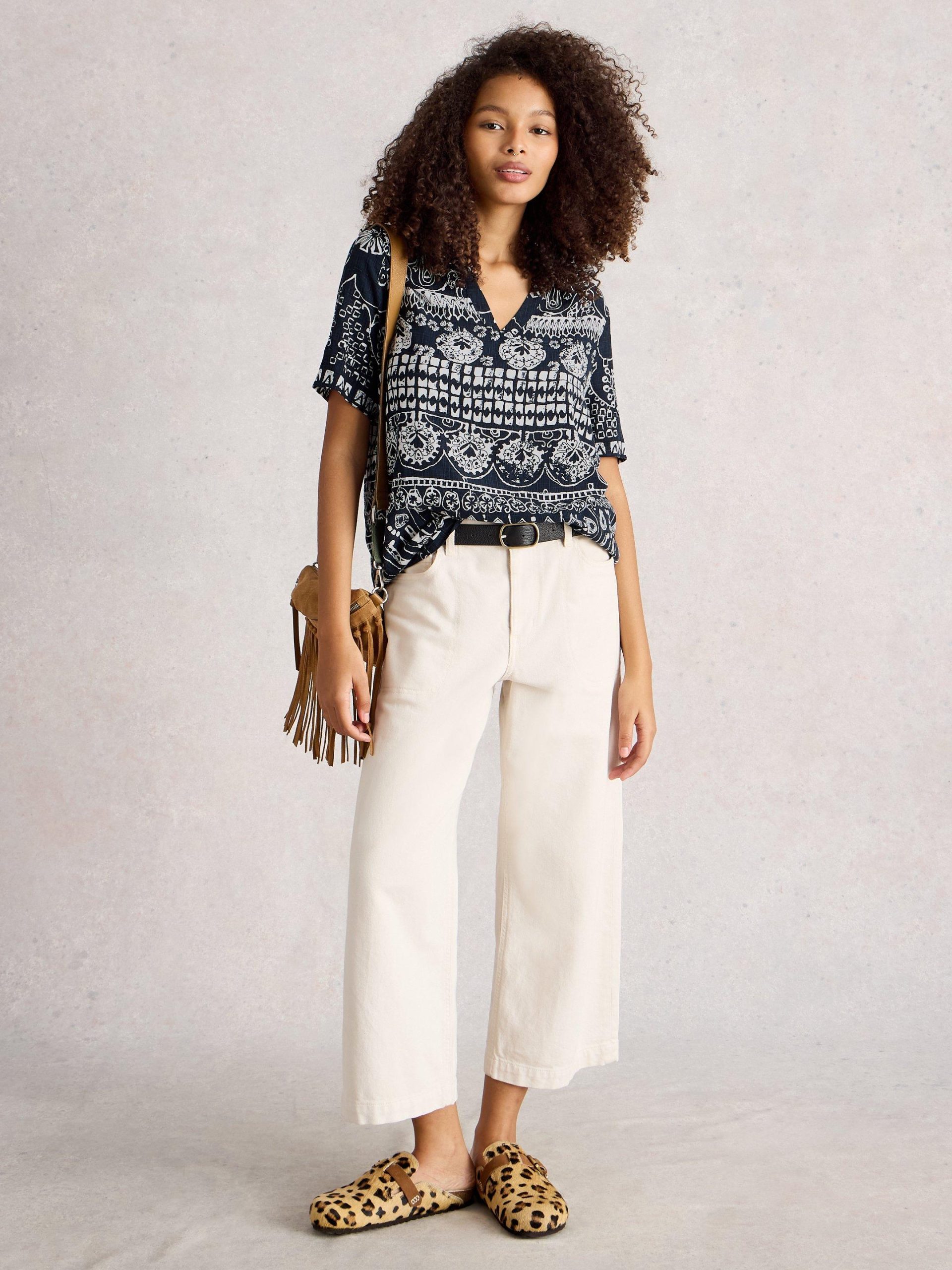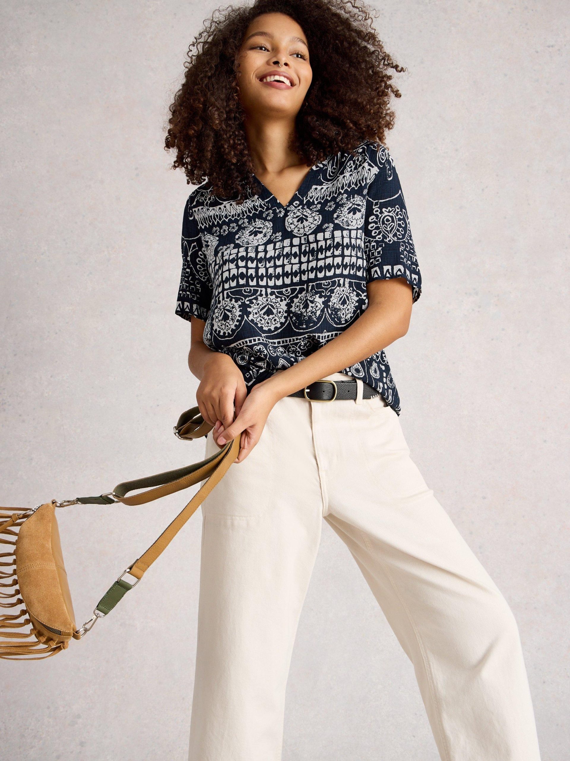 An easy-to-wear top with a v-neck and three-quarter length sleeves. Love on top.