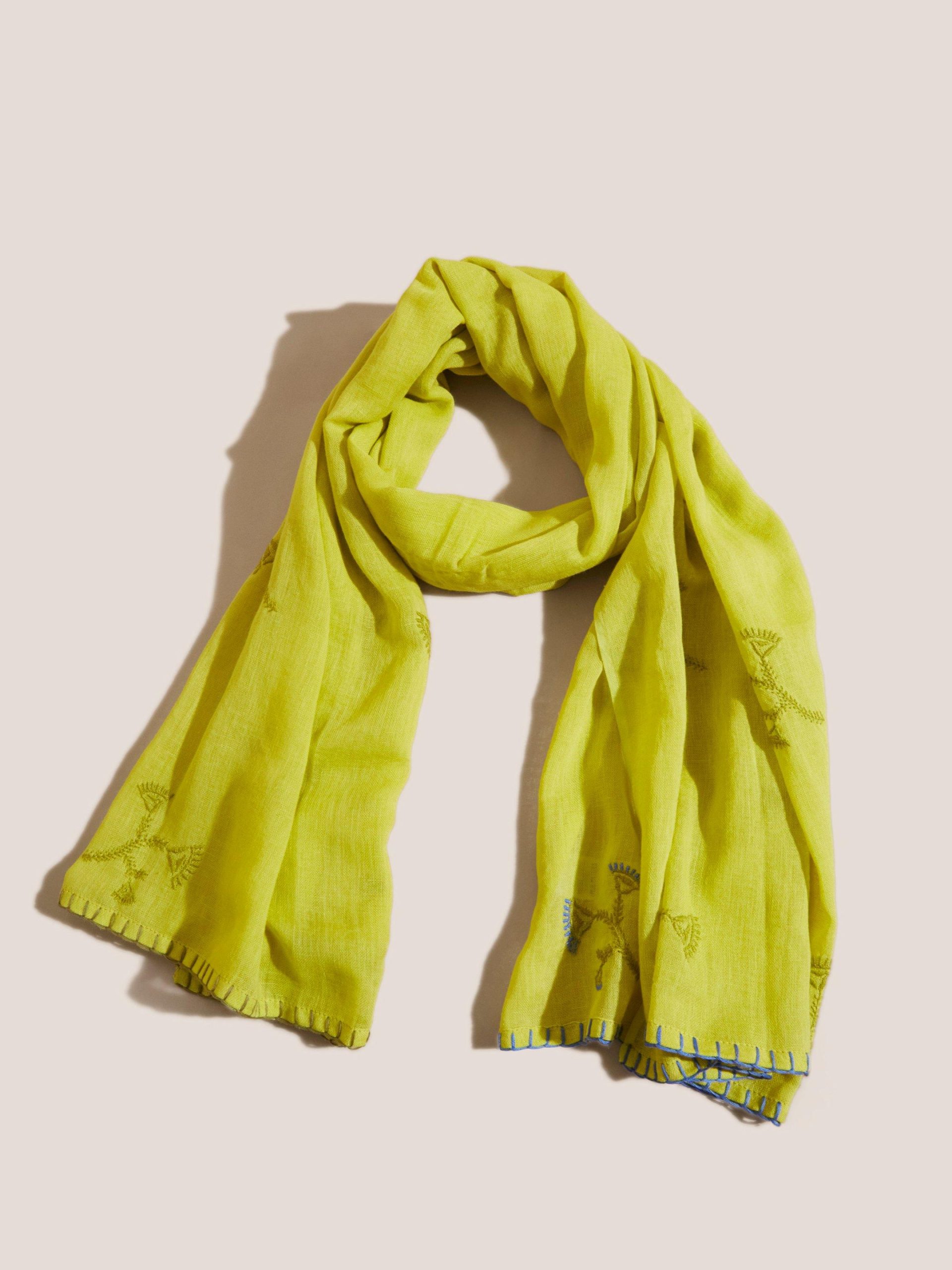 White Stuff Women’s Embroidered Cotton Scarf | Light Green