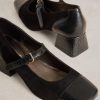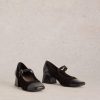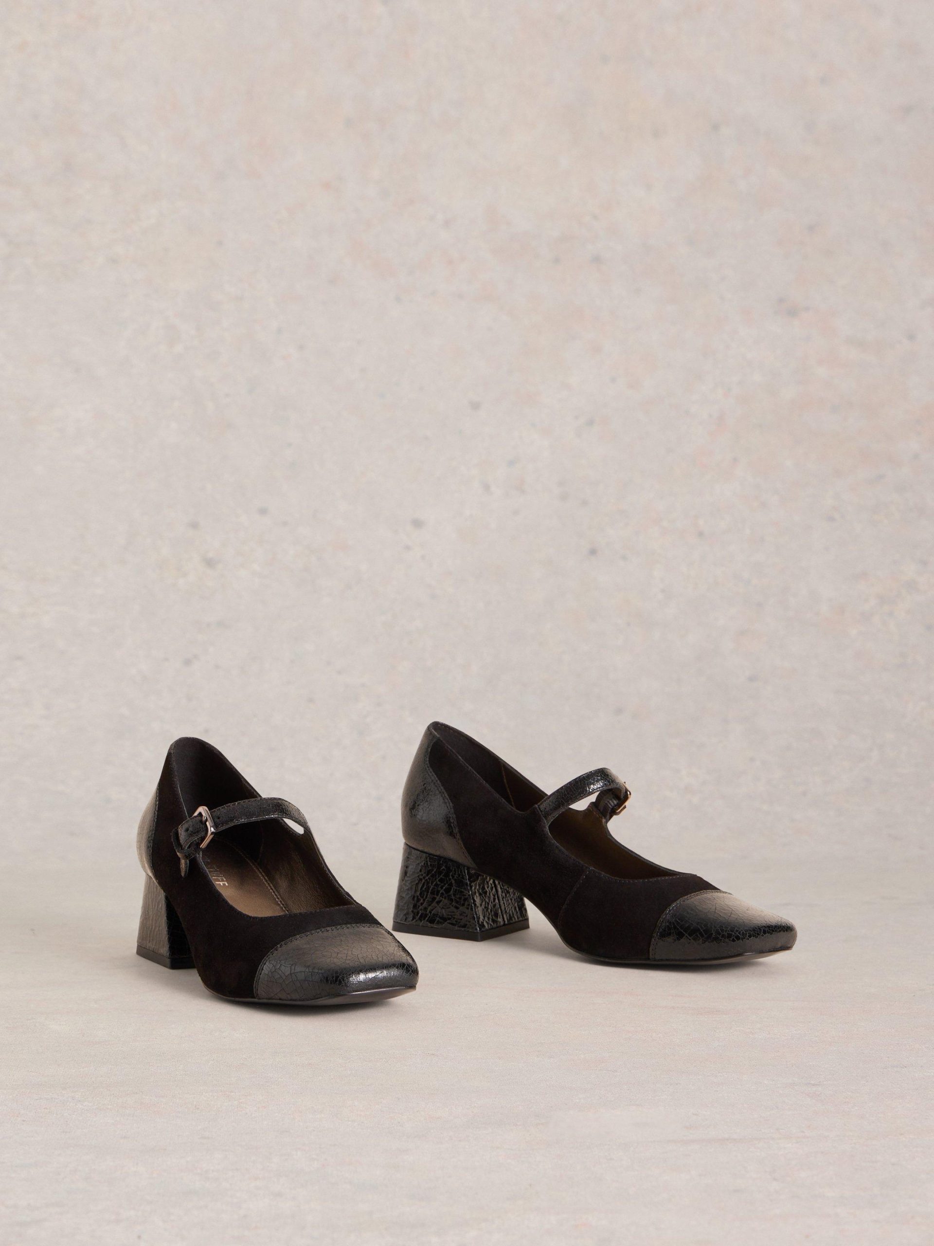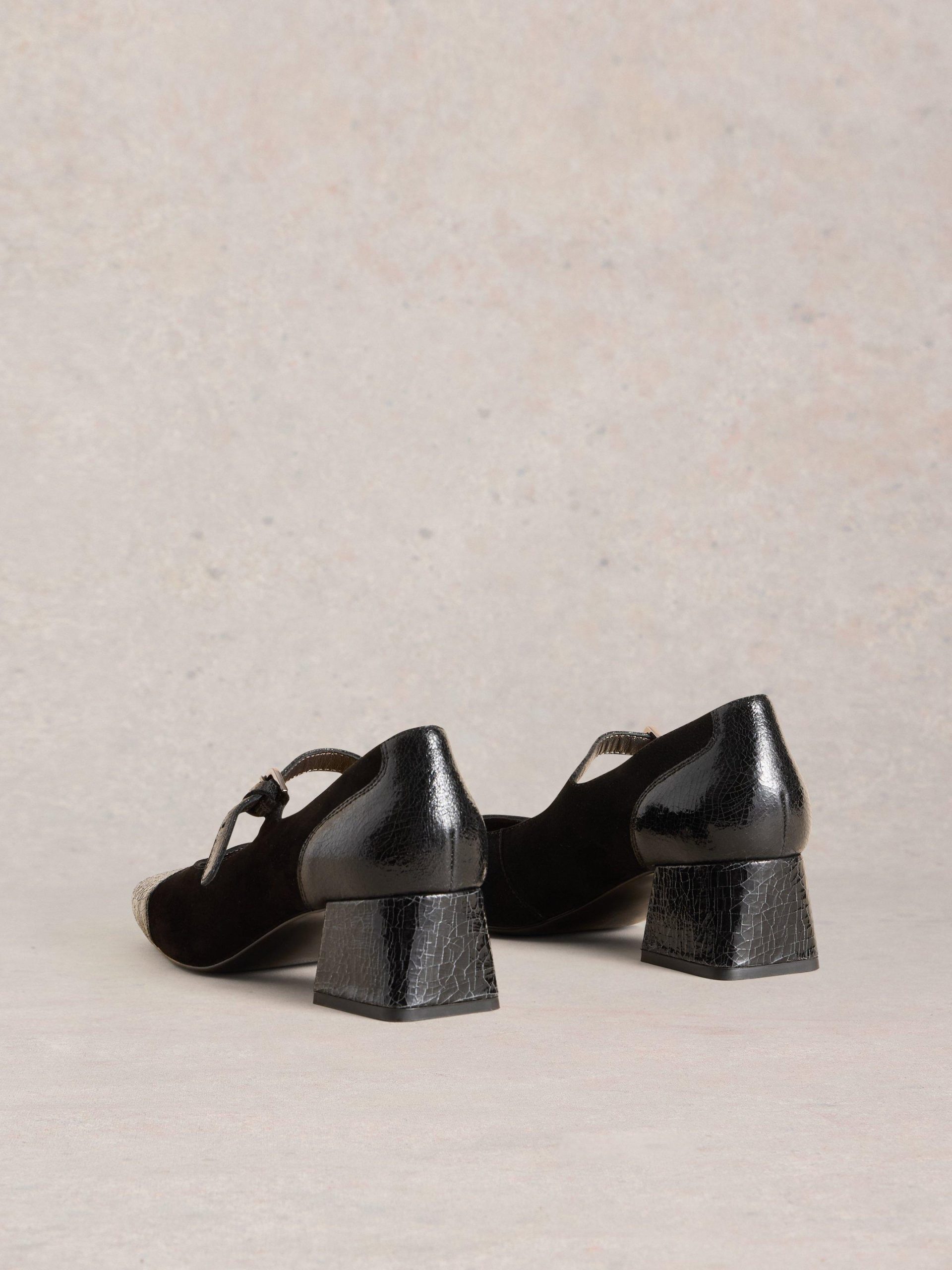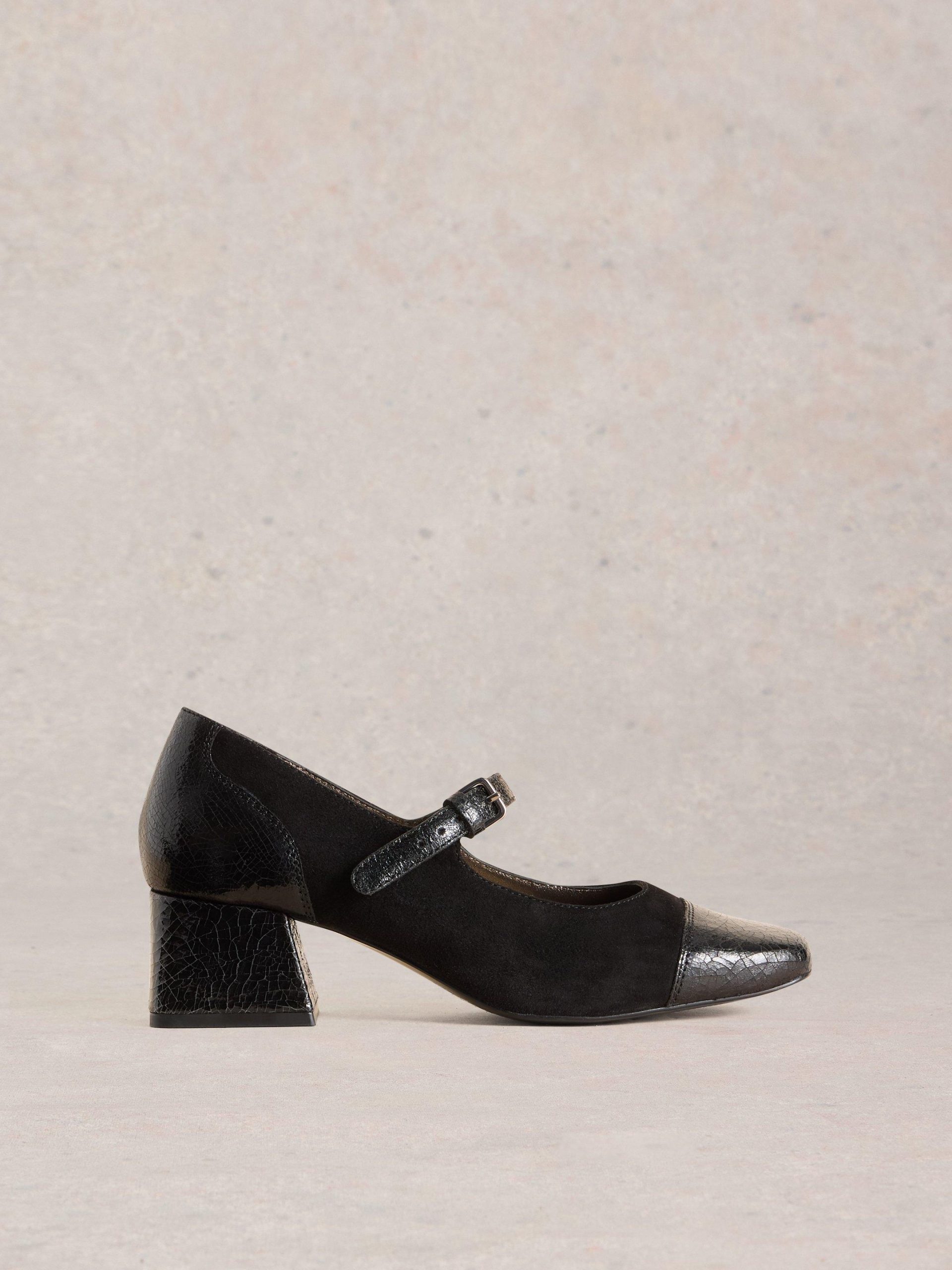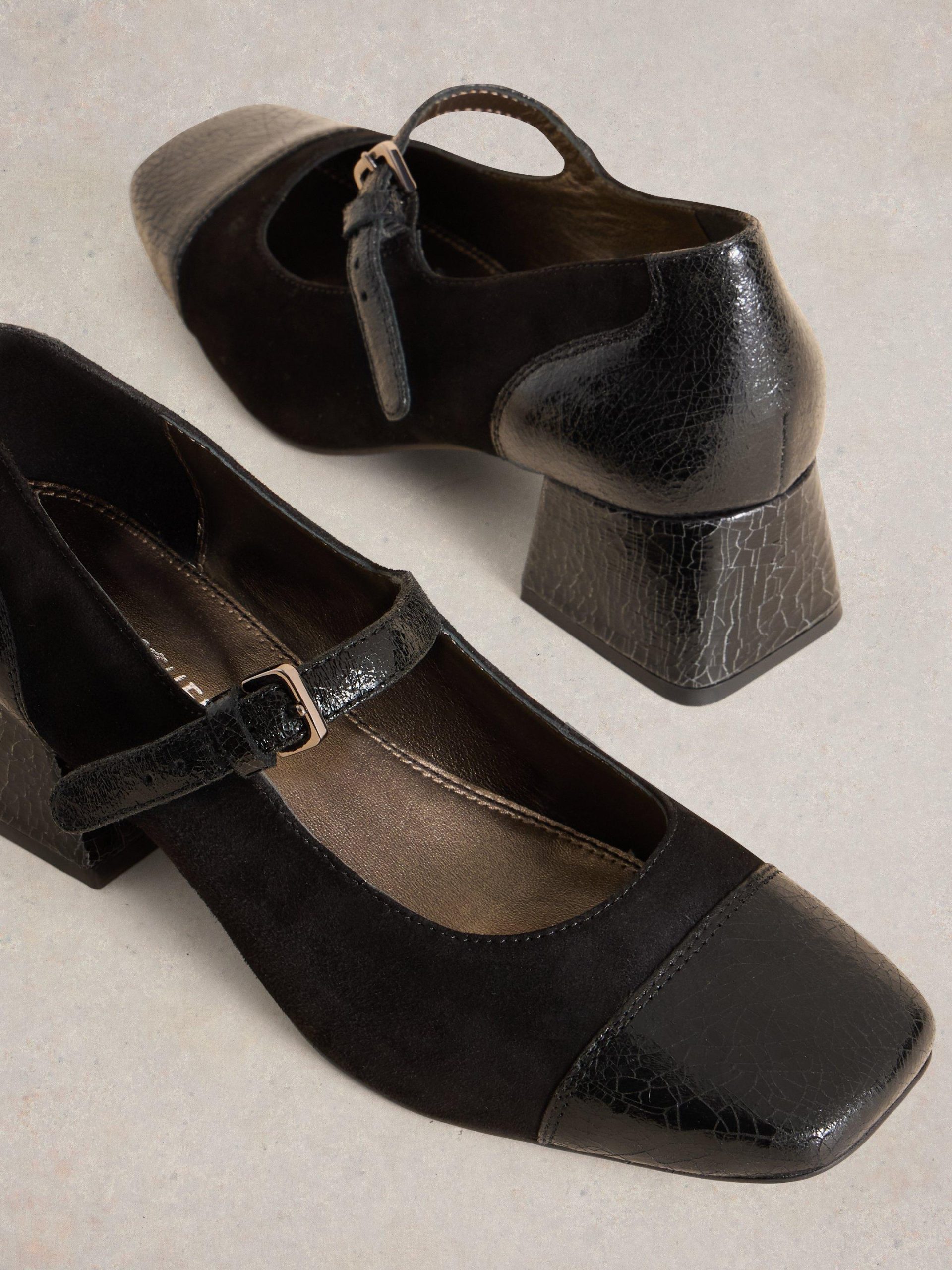 A dressier take on the typical Mary Jane shoes. We’ve added a low heel, sumptuous suede and cool crackle foil for a sheeny effect.