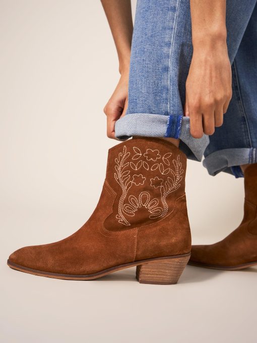 Some boots were made for walking. These embroidered suede boots were made for looking great with blue denim.