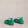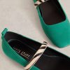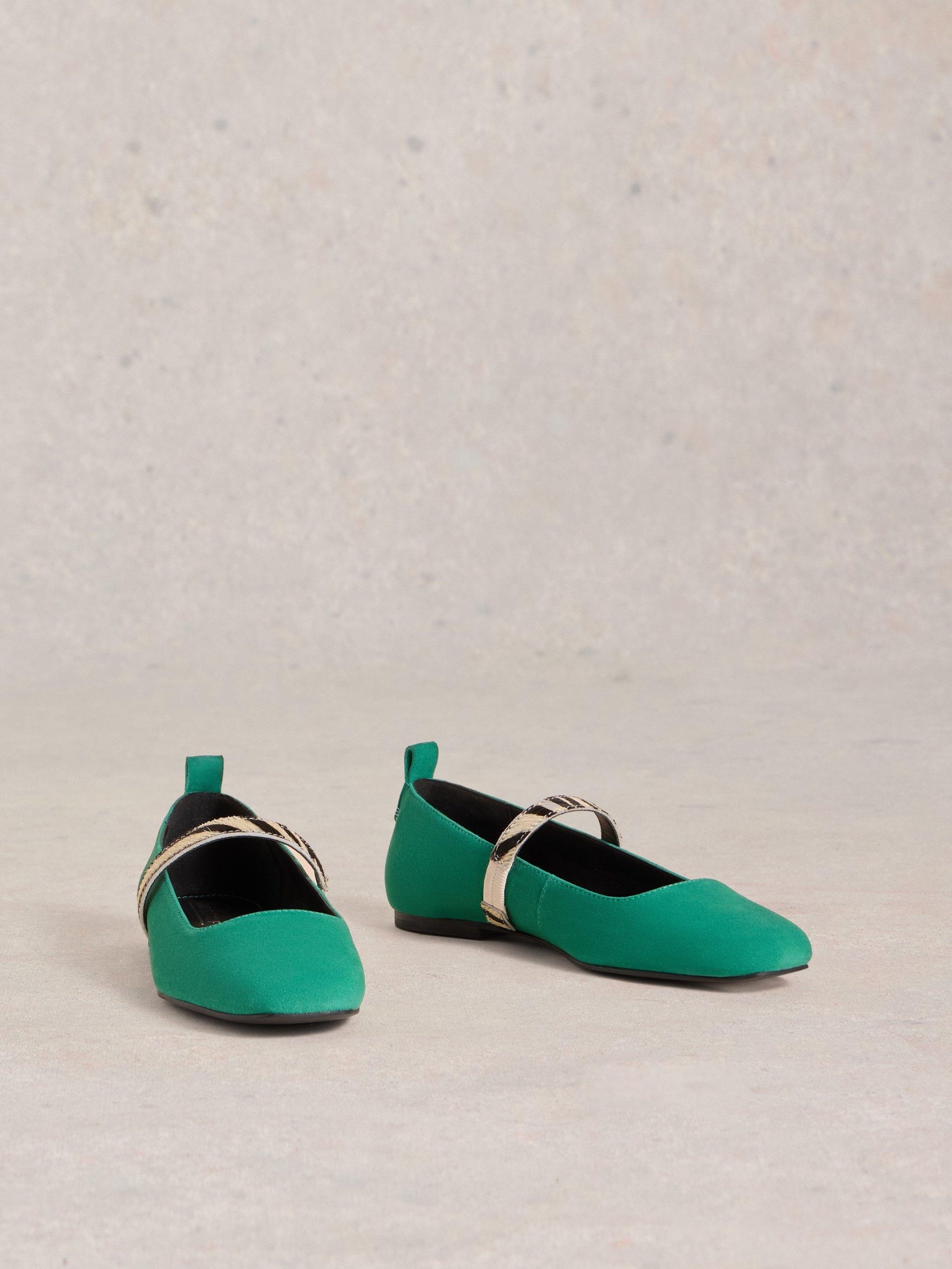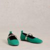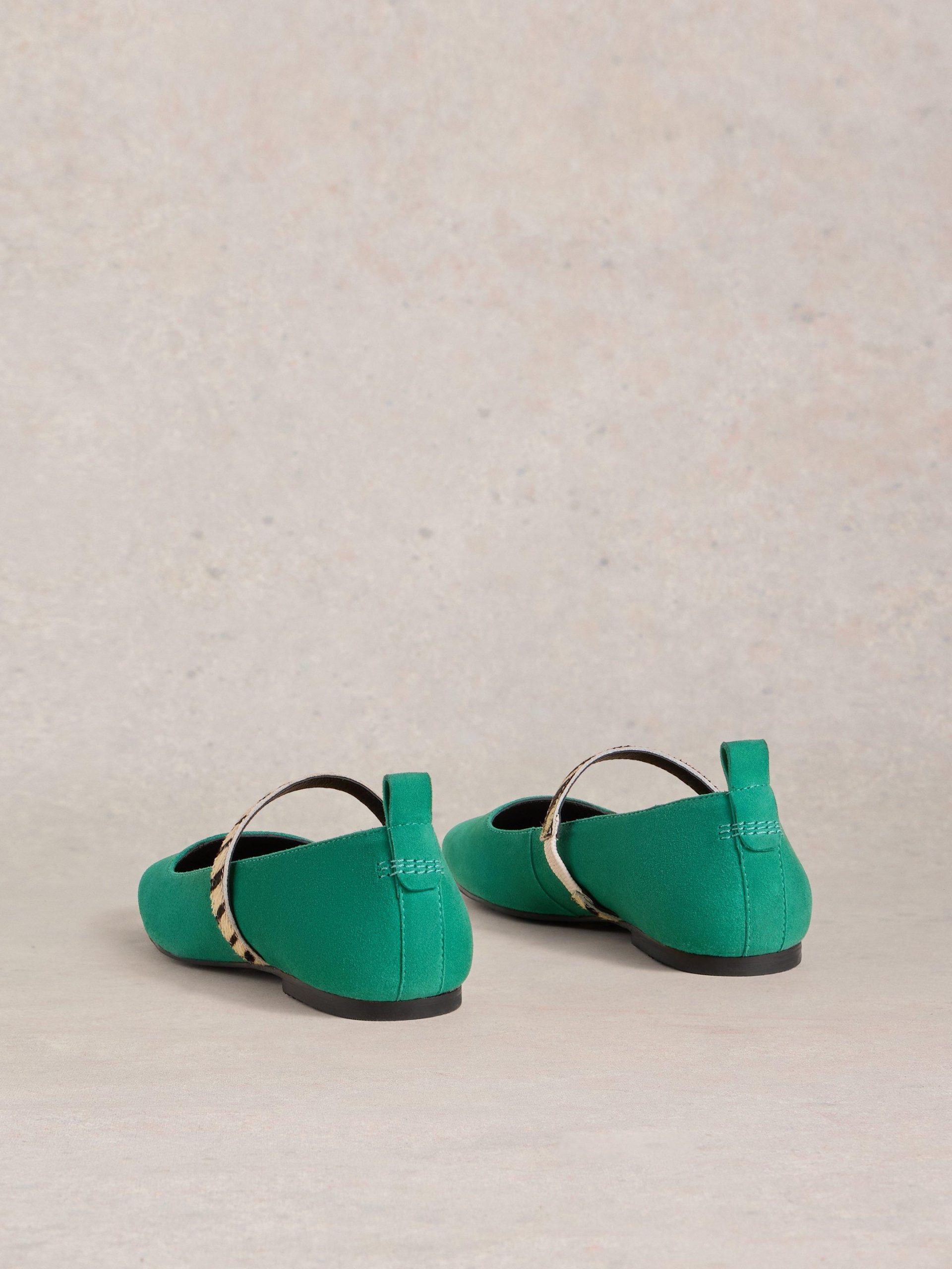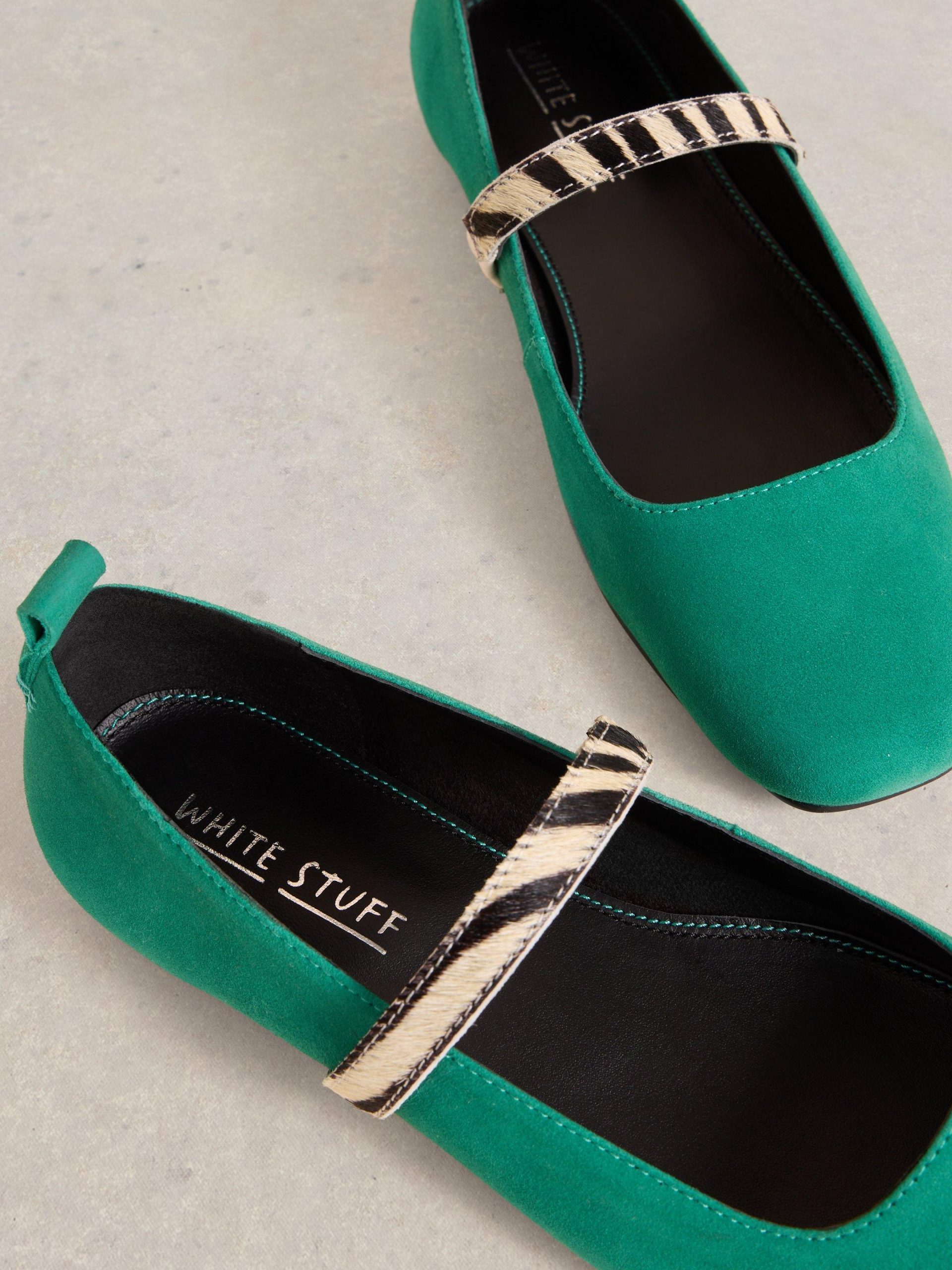 Who says you can’t mix brights with animal print? Not us, no way. Smooth suede ballerinas with a zebra print strap.